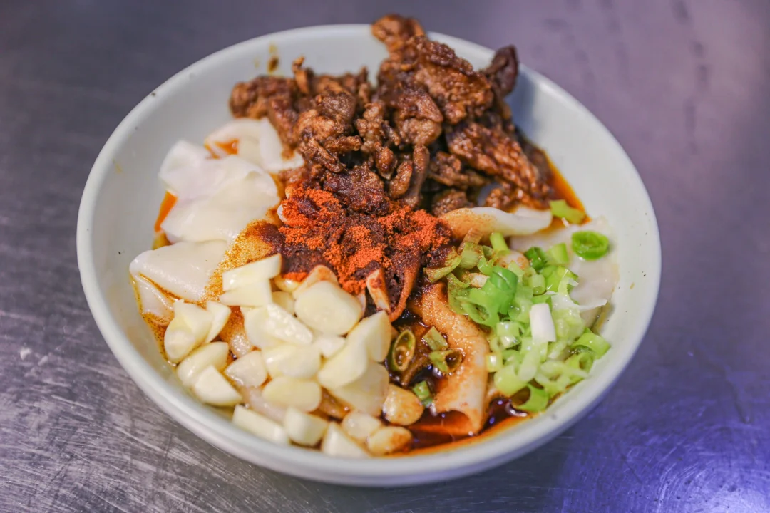 油泼扯面的做法:碗里加一点味精,盐,倒入一点酱油,一点香醋,把面条放上,铺上葱花、蒜片或者蒜蓉,辣椒面和芝麻,用热油一泼即可。