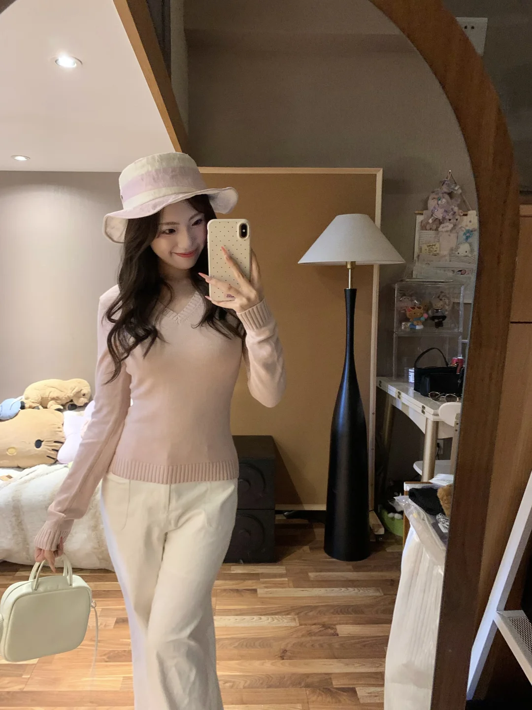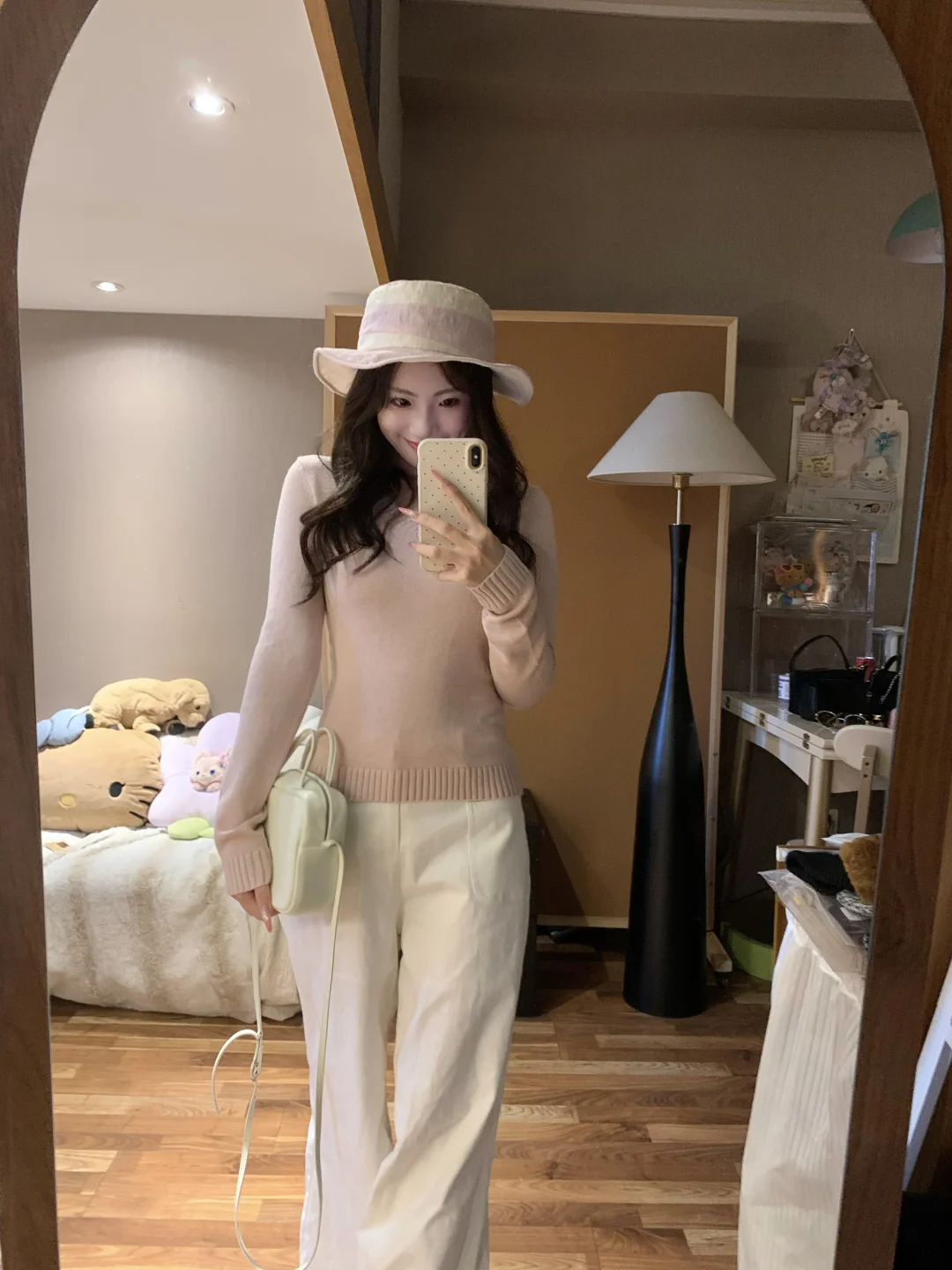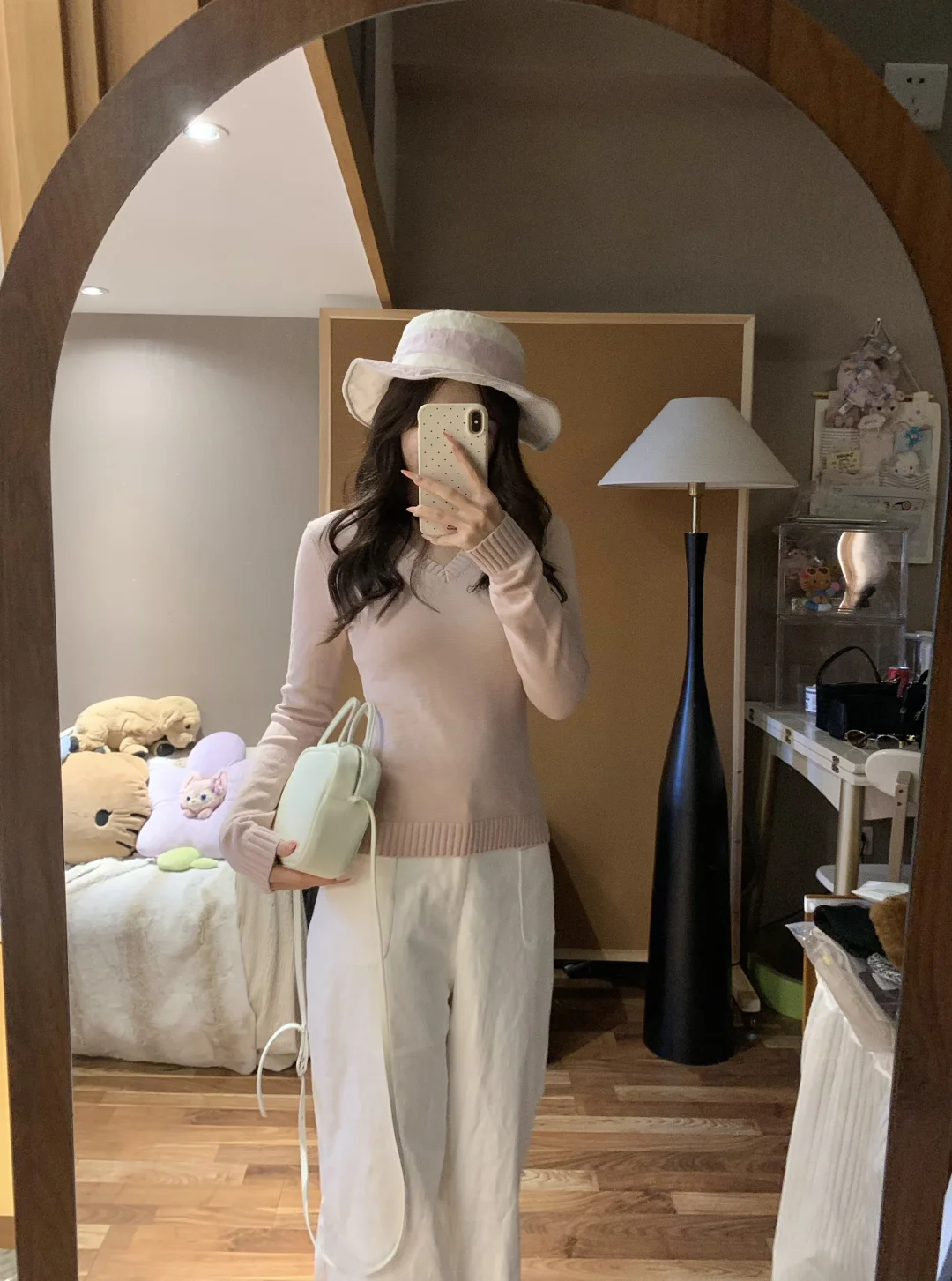 慵懒感穿搭 韩系穿搭 蘑糯糯 粉色毛衣 粉色穿搭 温柔纯欲穿搭 初春穿搭 韩系 蘑糯糯新品 温温柔柔随性穿搭