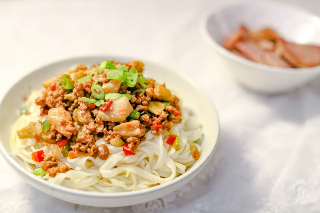 坚持做100种面不重样(66)榨菜肉末拌面