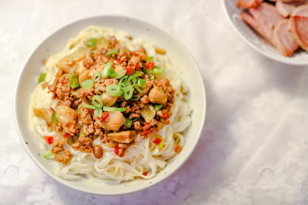 具体肉酱做法请参考杂酱面。