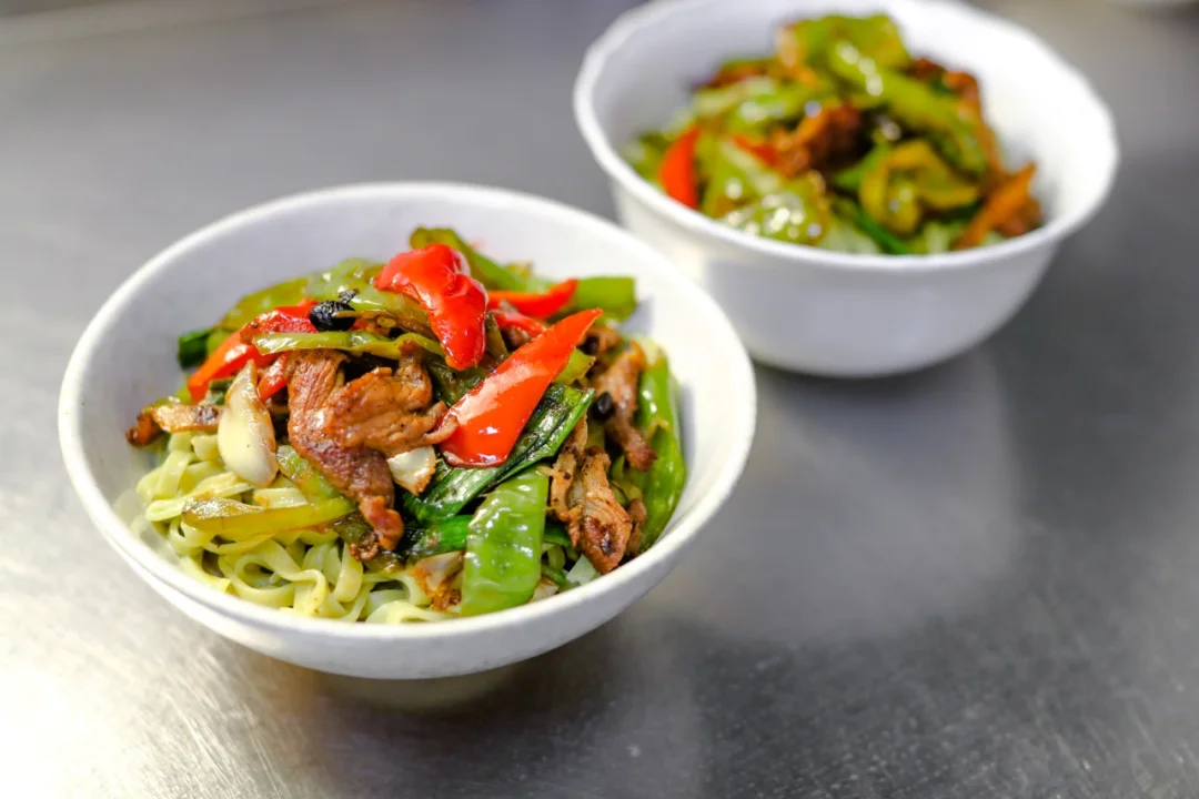 5.面条煮好以后,加入一点面汤,放入炒好的辣椒炒肉,一碗面大功告成。