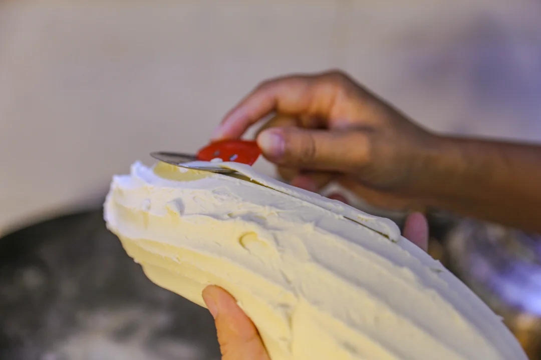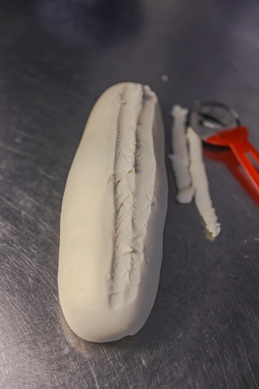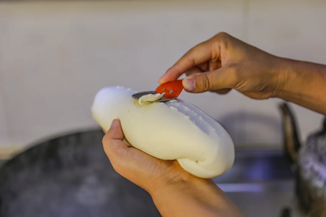 直到最后是一个非常光滑白细的面团,揉成长方形。