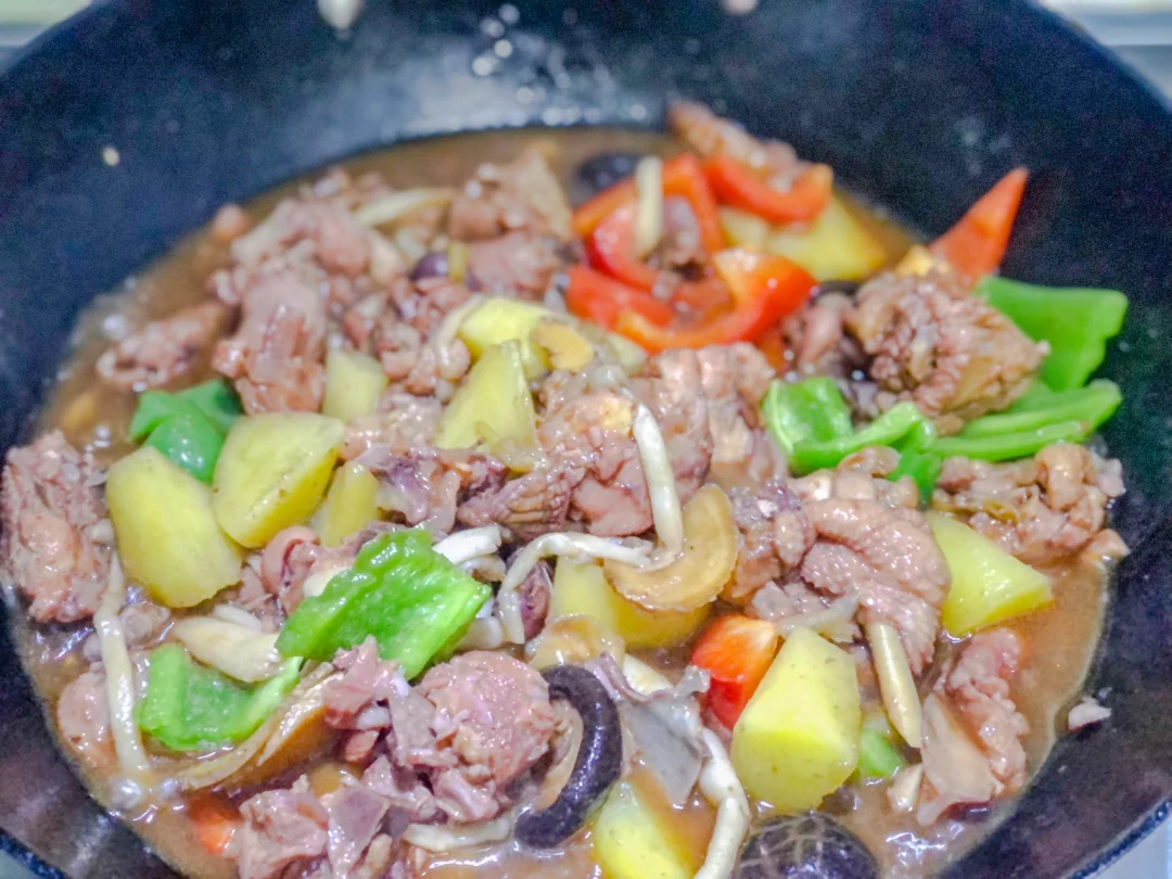 昨天中午做了黄焖鸡米饭,晚上用剩余的一些做了大盘鸡拌面。