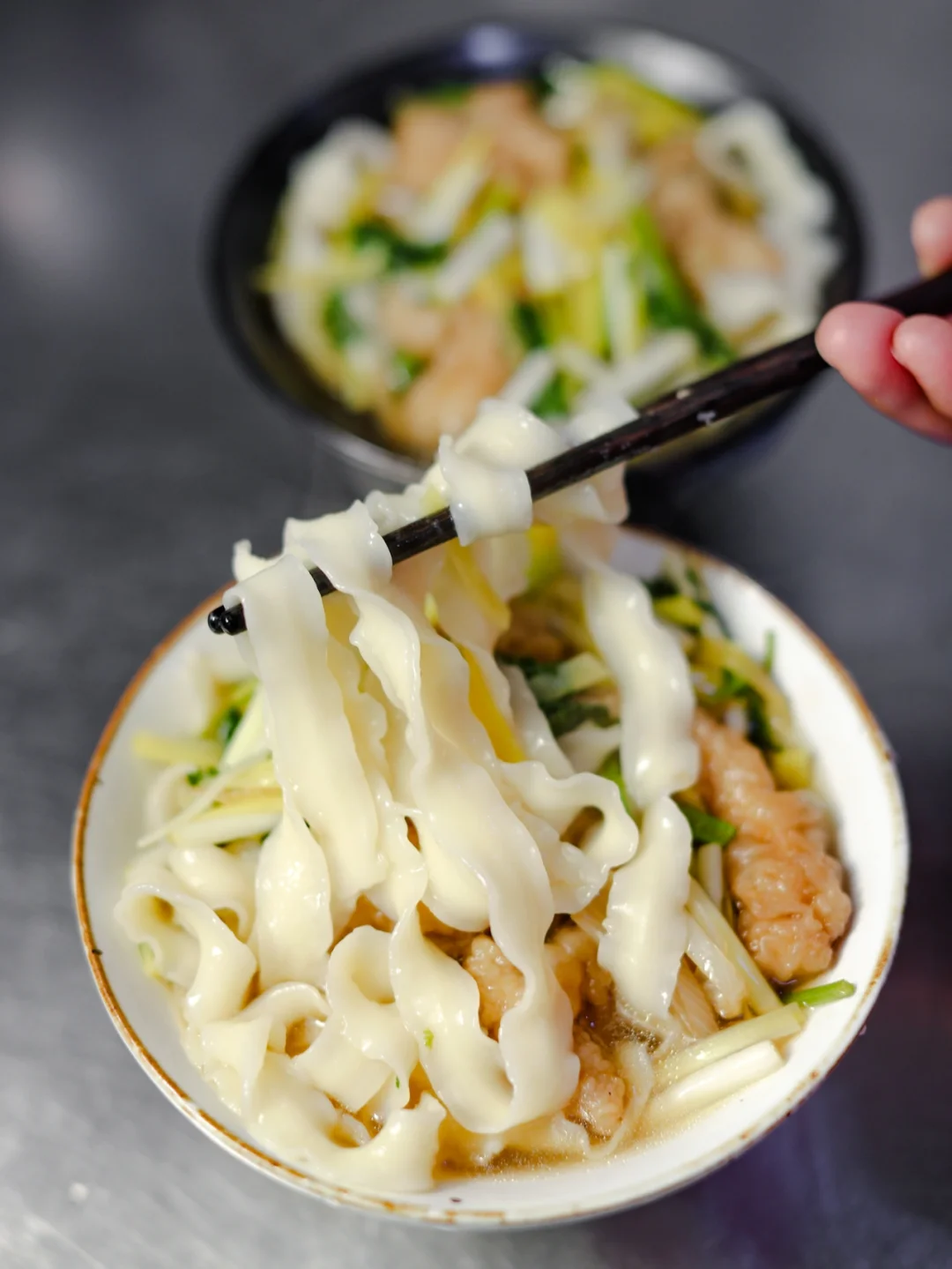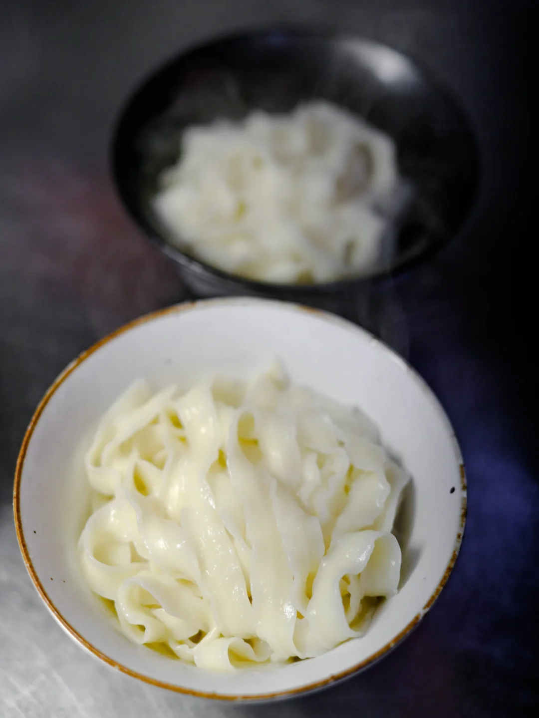💕4.面条煮熟之后放入碗中,浇上酸辣酥肉汤即可。