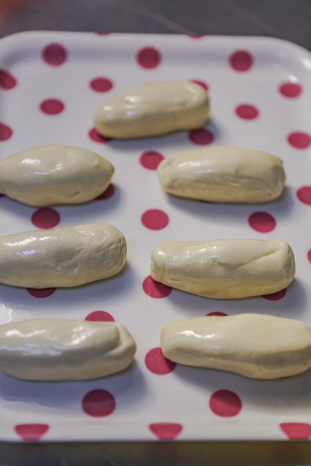 5.依次剂子盘在一个大盘子里,再次刷上食用油,密闭醒发1个小时以上。