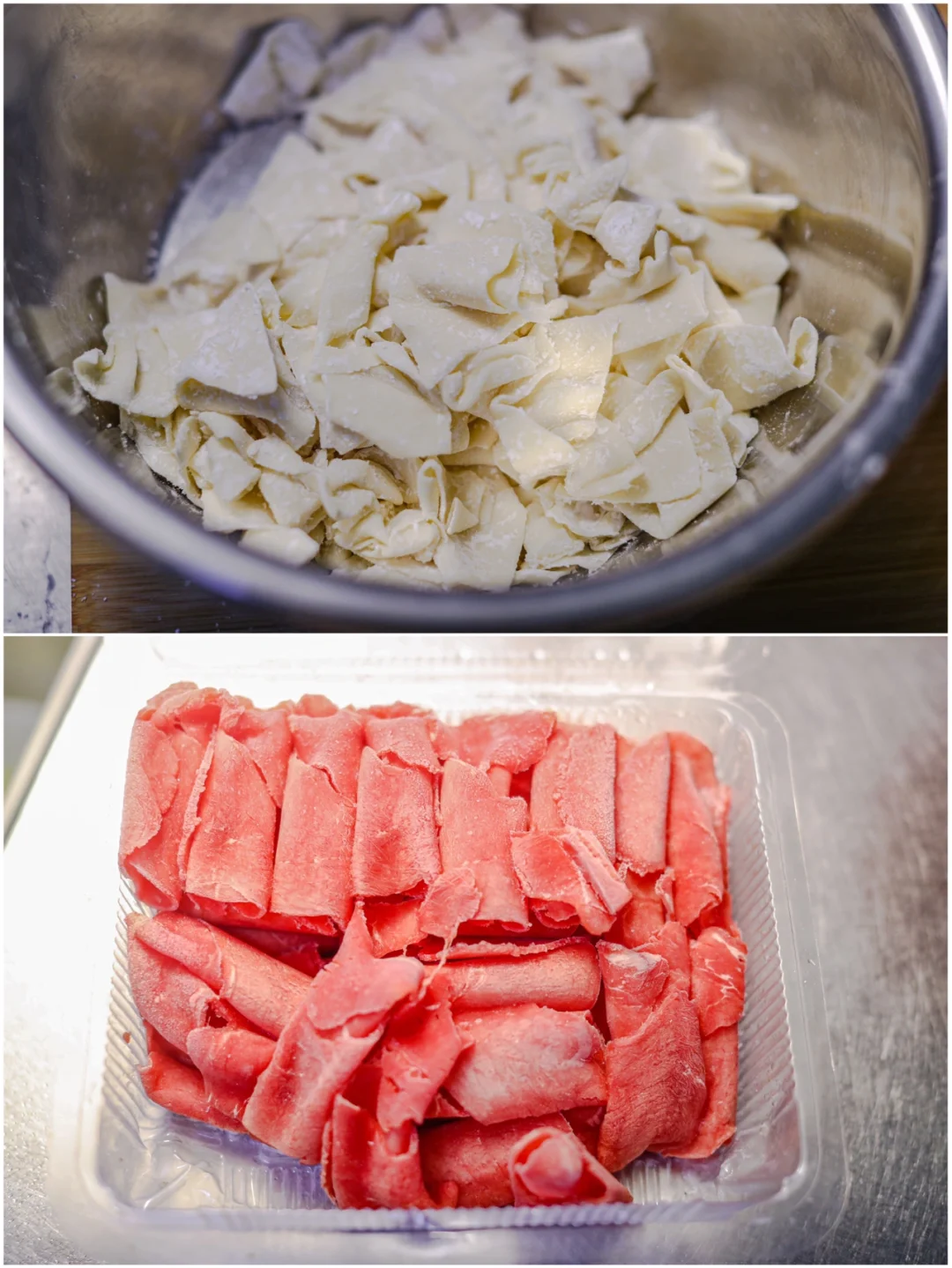 [种草R]加入切好的面片和牛肉片,煮熟即可。