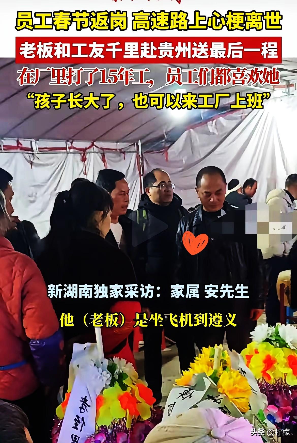 听说那老板平时在厂里话不多,员工犯错了该罚也不含糊,谁也没料到他能做到这份上。去送别的员工说,老板在灵前站了好久,眼圈红着,嘴里反复念叨“她去年还说想攒钱给孩子报个补习班”。原来他记得每个员工的小事,记着谁家里有老人要照顾,谁的孩子快中考了,只是平时不说而已。