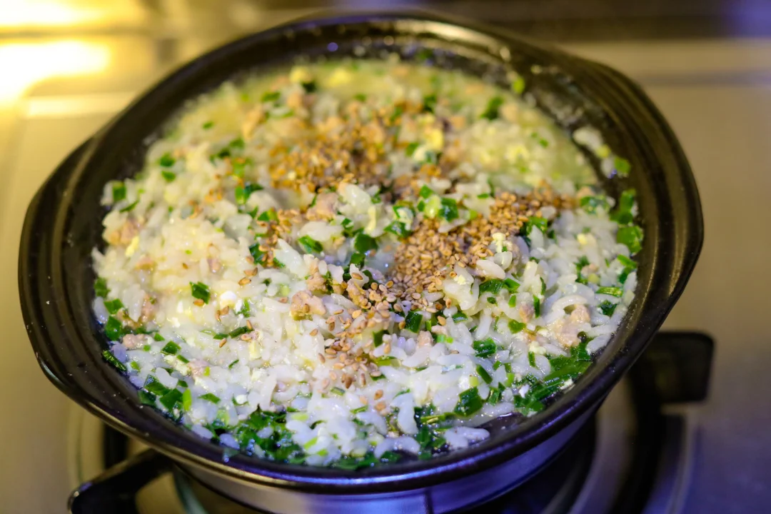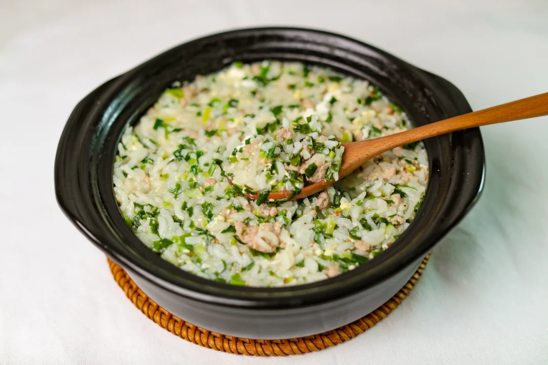 今天就结合小时候的味道和杂志上看的,总结出了自己的味道。做法都是让米饭充分吸收汤汁的味道,是非常适合在寒冷的季节享用的料理。不只好吃,也能让人身心都感受到温暖。这次食材部分我用到了韭菜和猪绞肉,韭菜也是春天里的当季蔬菜,十分新鲜,两者的搭配再合适不过,加上高汤,营养很丰富。做法也很简单,10分钟就可以搞定。
