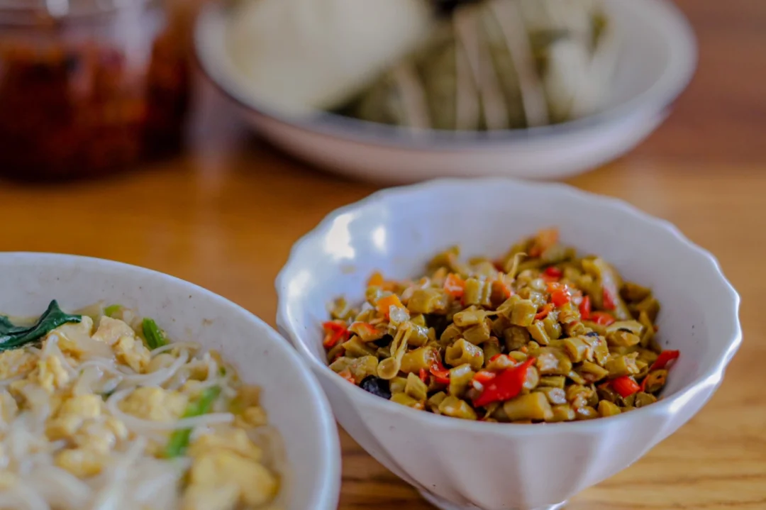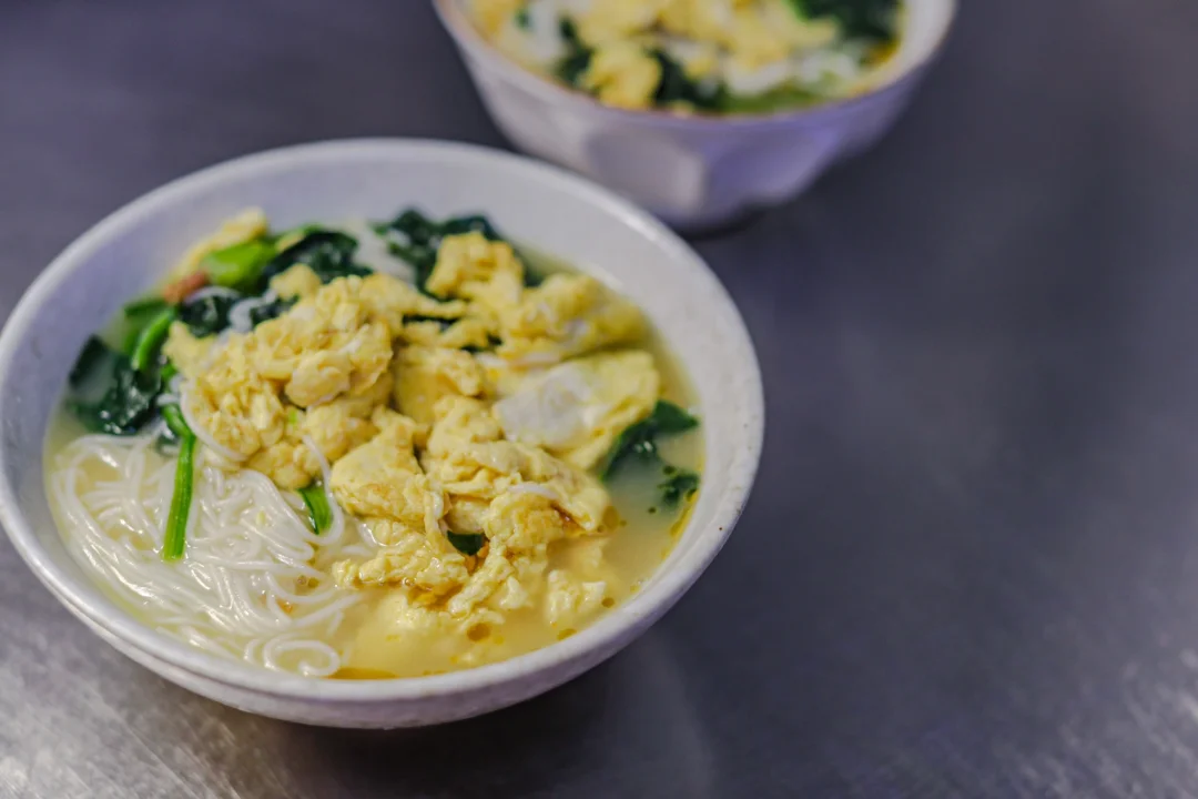 🌈鸡蛋打散,放入锅中炒散,加入高汤或者热水。滚开之后调味,加入食盐,鸡粉,胡椒粉,泡好的米粉放进去,快熟的时候加入菠菜,出锅滴入适量香油即可。搭配自己做的酸豆角,酸爽开胃,饥肠辘辘的时候来上这么一碗,甭提多舒畅了~