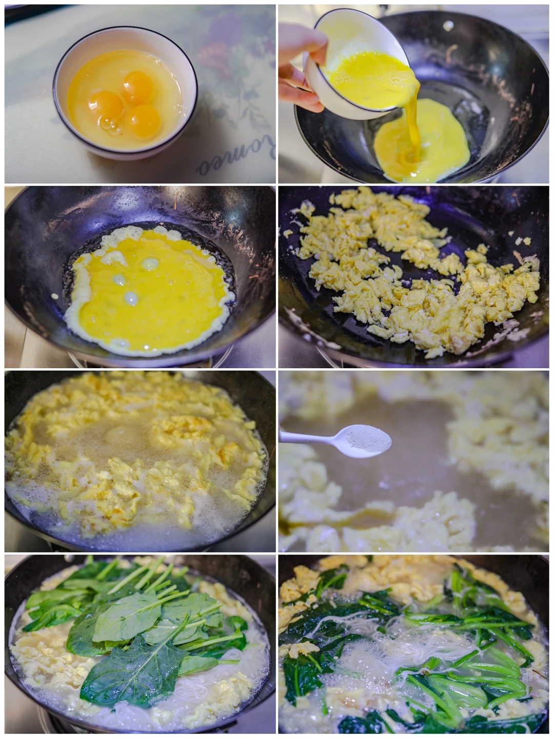 🌈春天的时令蔬菜,菠菜以它最优越的生长速度,成为百姓餐桌上的首选,早上用菠菜和鸡蛋做了汤粉。