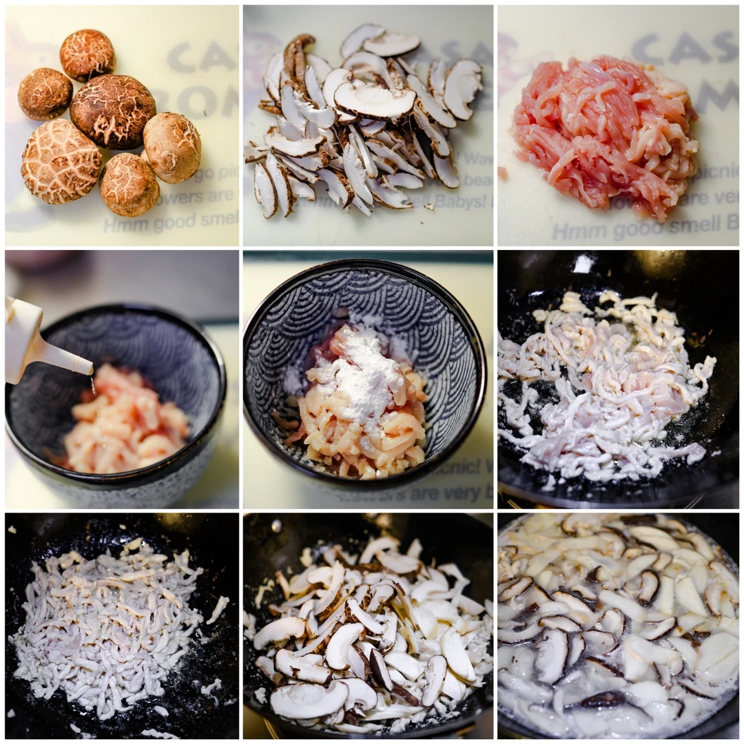1.鸡胸肉清洗干净之后,水份控干,切成细丝。放入容器中加入少许料酒和淀粉抓拌均匀,放少许食用油封住里面的水份,腌制15分钟。