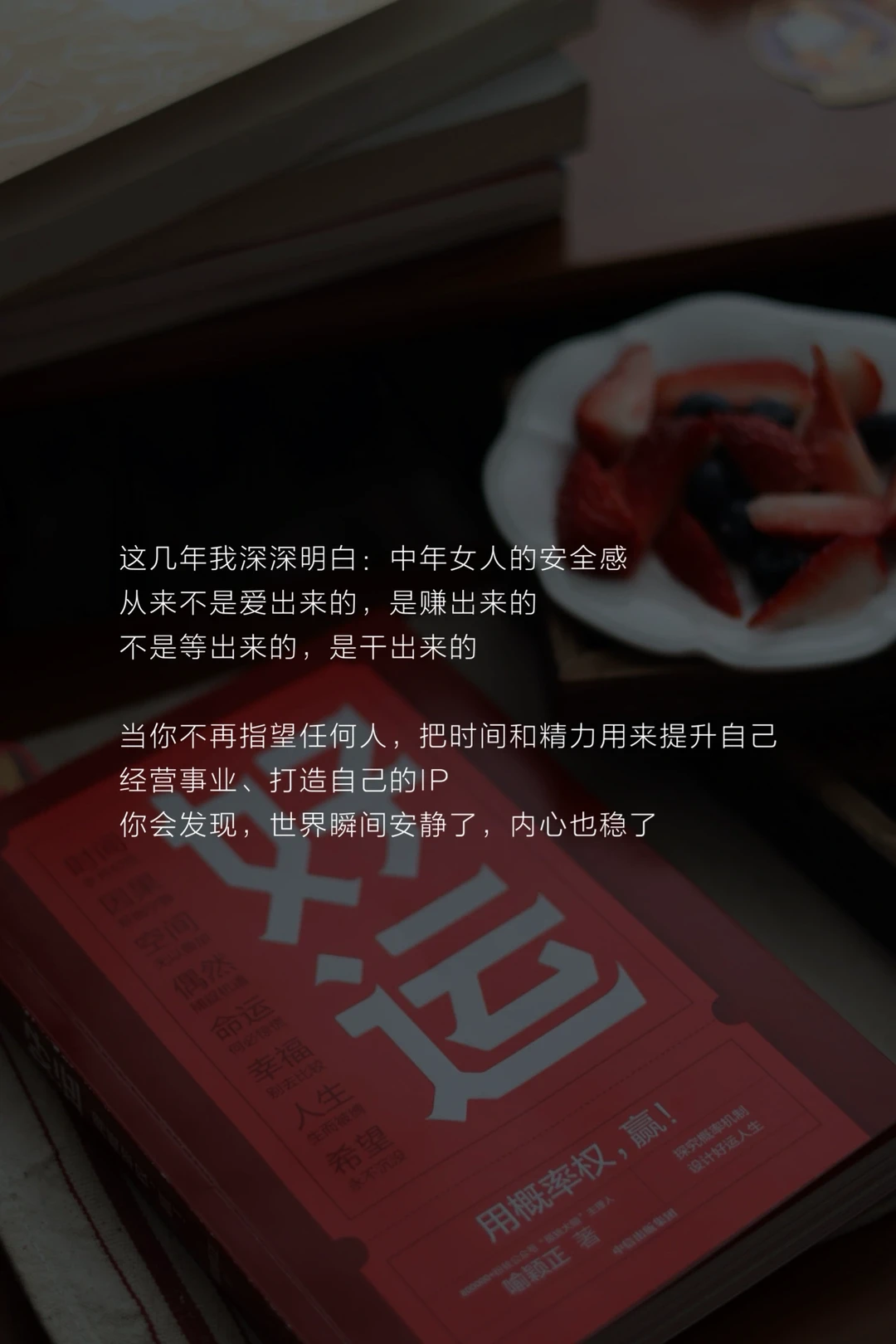 这几年我深深明白:中年女人的安全感,从来不是爱出来的,是赚出来的;不是等出来的,是干出来的。