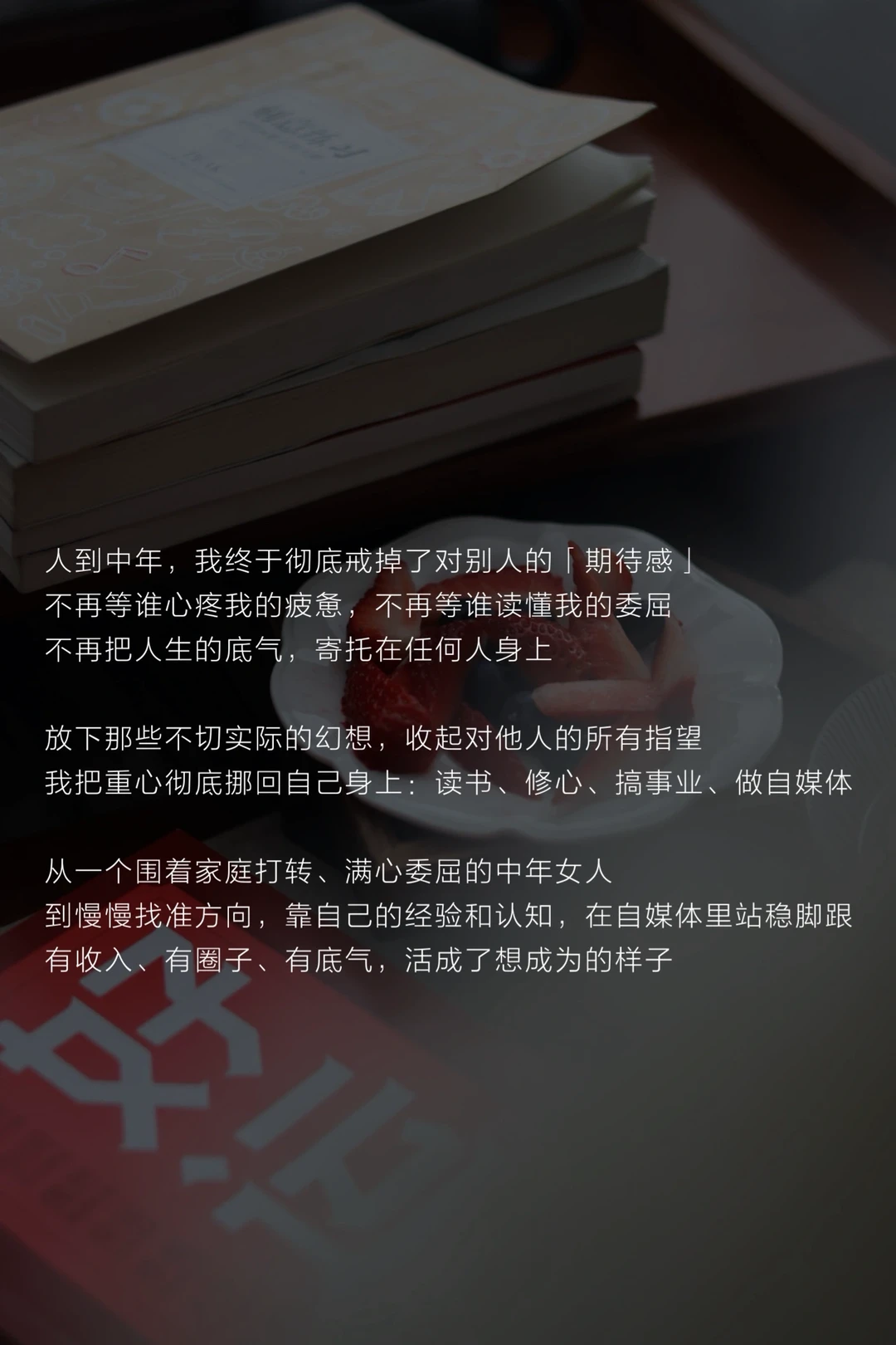 放下那些不切实际的幻想,收起对他人的所有指望,我把重心彻底挪回自己身上:读书、修心、搞事业、做自媒体。