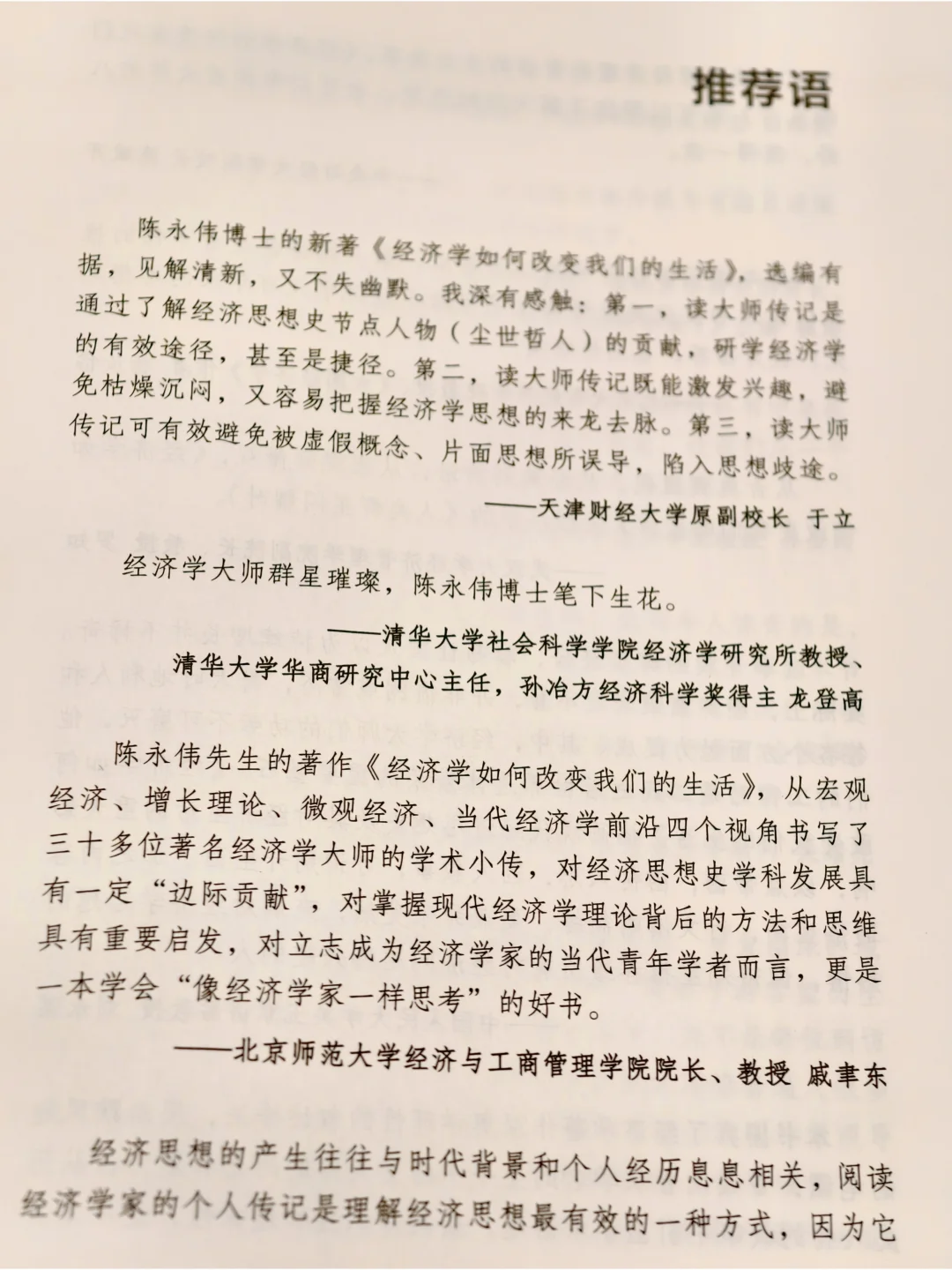 📕这本书从宏观经济、增长理论、微观经济、当代经济学前言四个视角书写了30多位著名经济学大师的学术小传,对经济思想史学科发展具有一定“边际贡献”,对掌握现代经济学理论背后的方法和思维具有重要启发,对立志于成为经济学家的当代青年学者而言,更是一本学会“像经济学家一样思考”的好书。