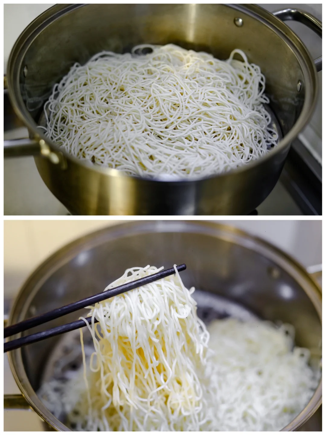 1.细面条适量,加入一点食用油,用筷子搅拌一下,以防粘连。开水上锅蒸10分钟,时间到了时候,开盖子,把面条抖散,备用。
