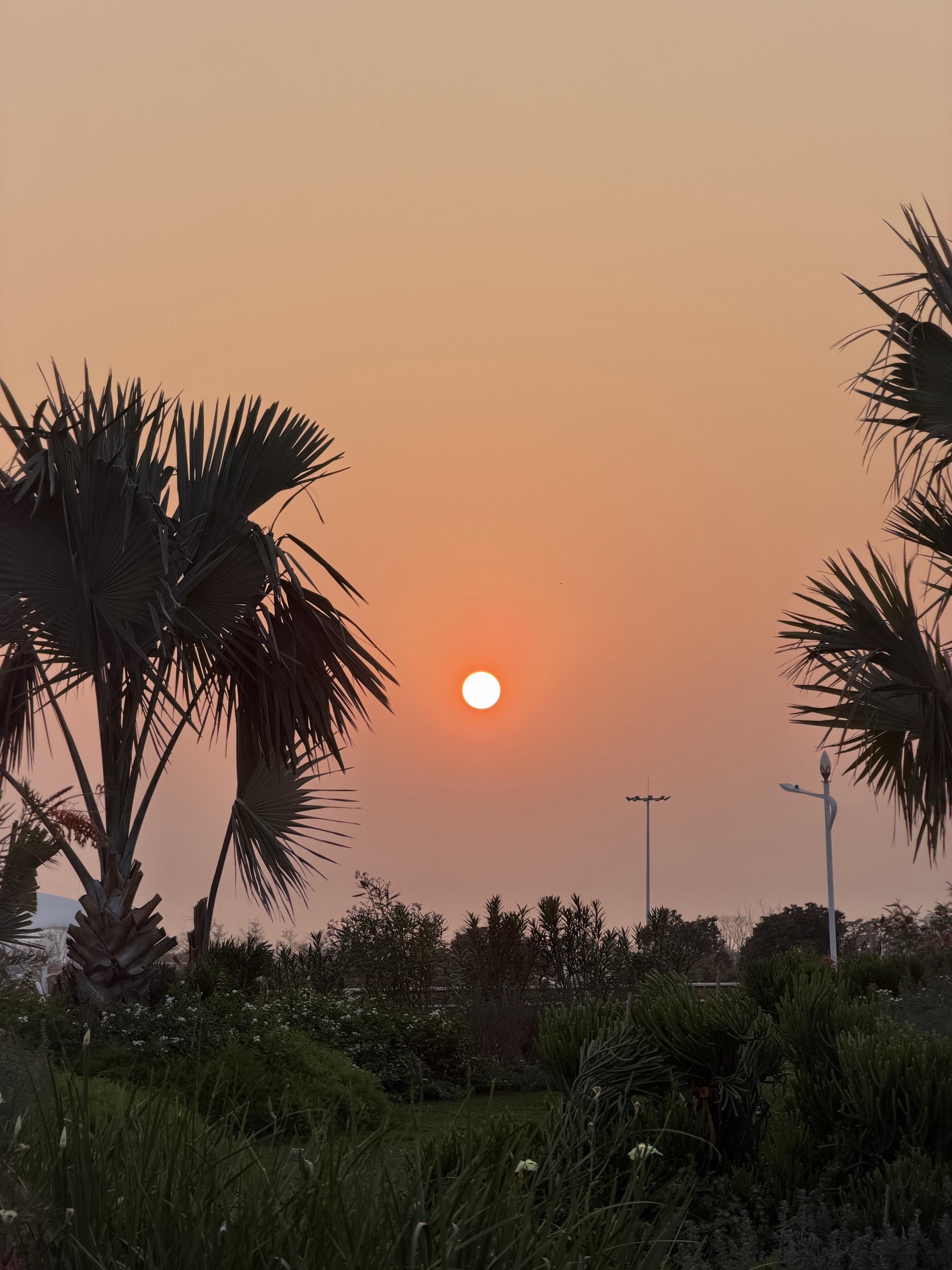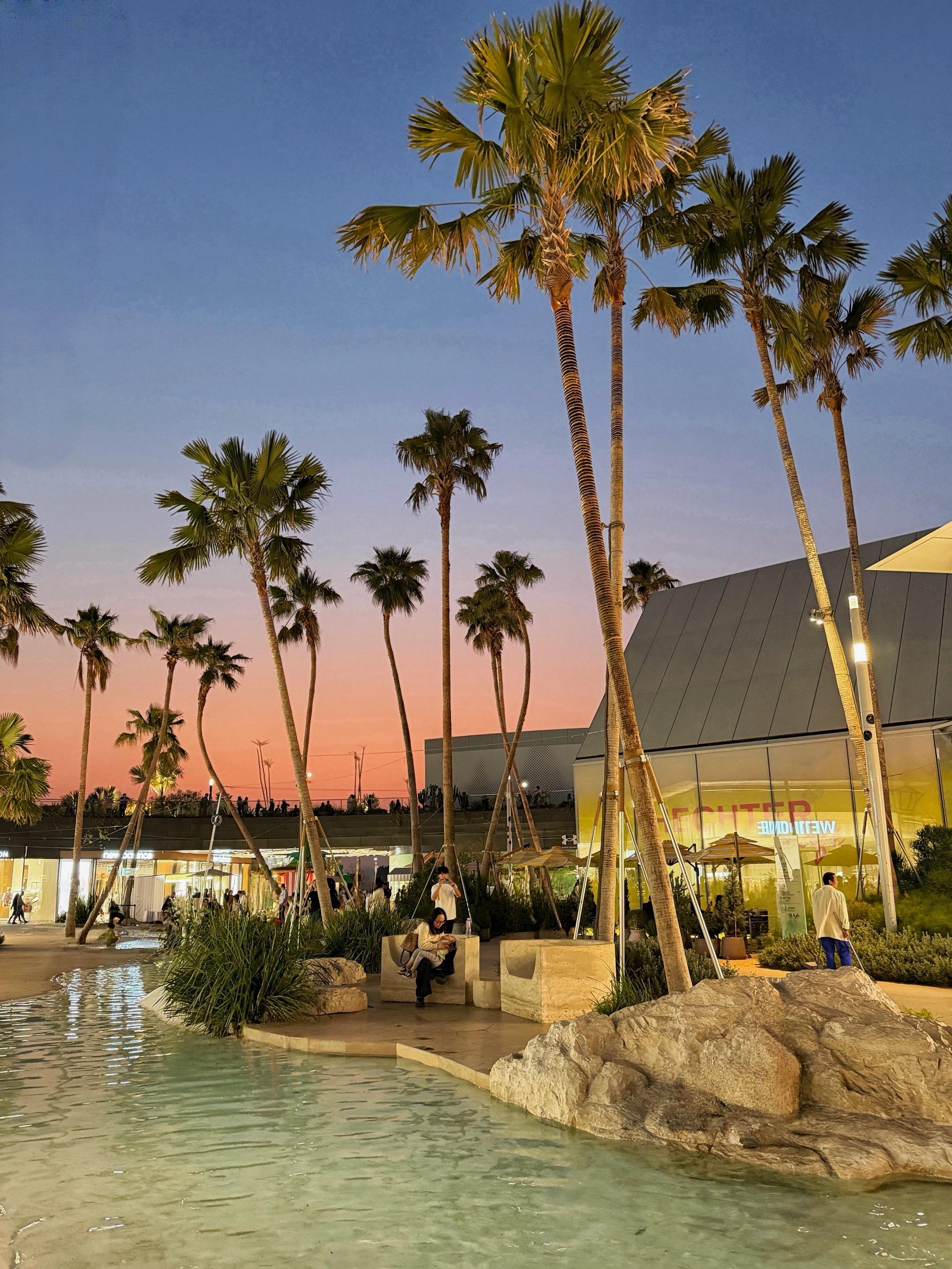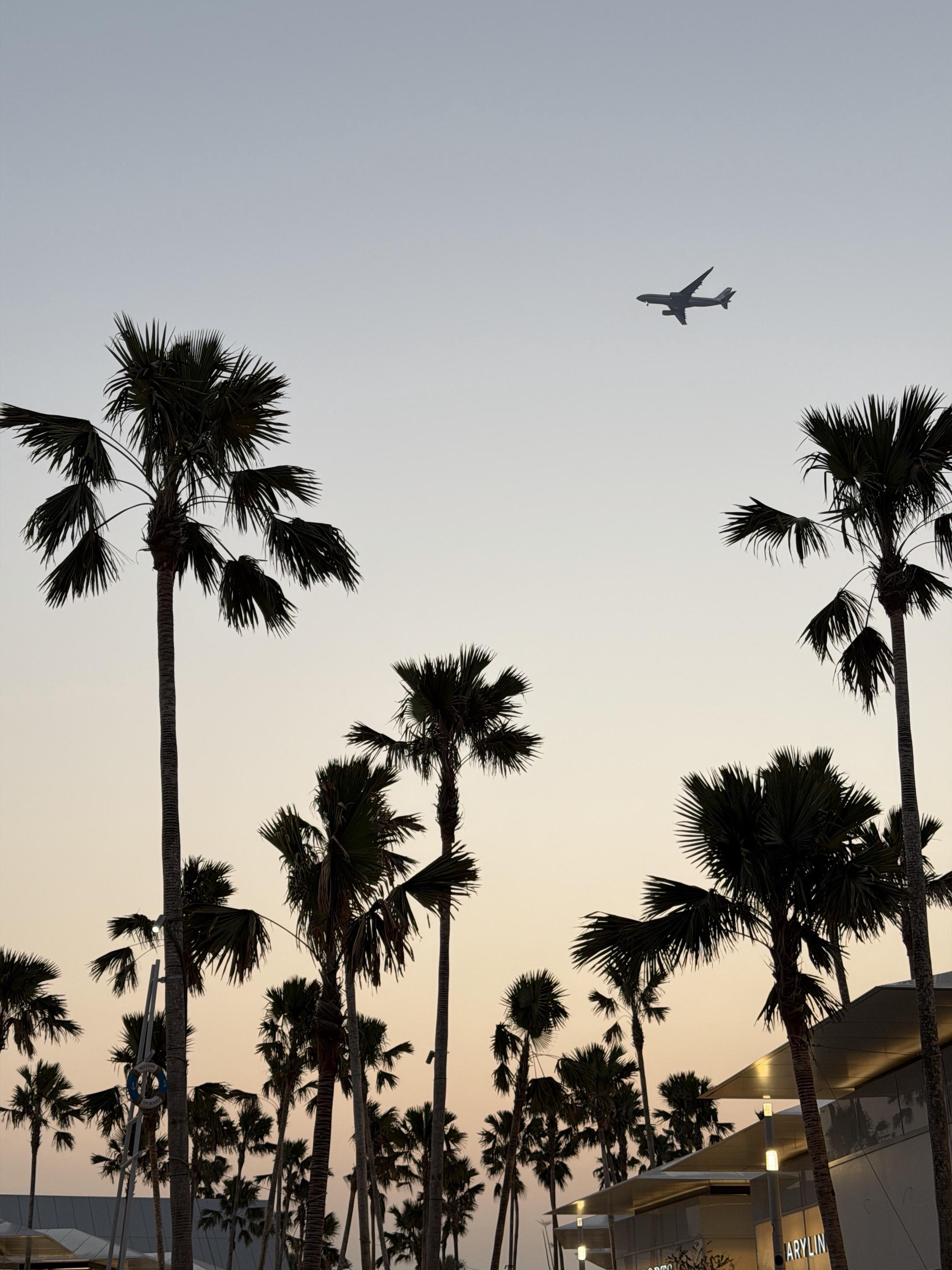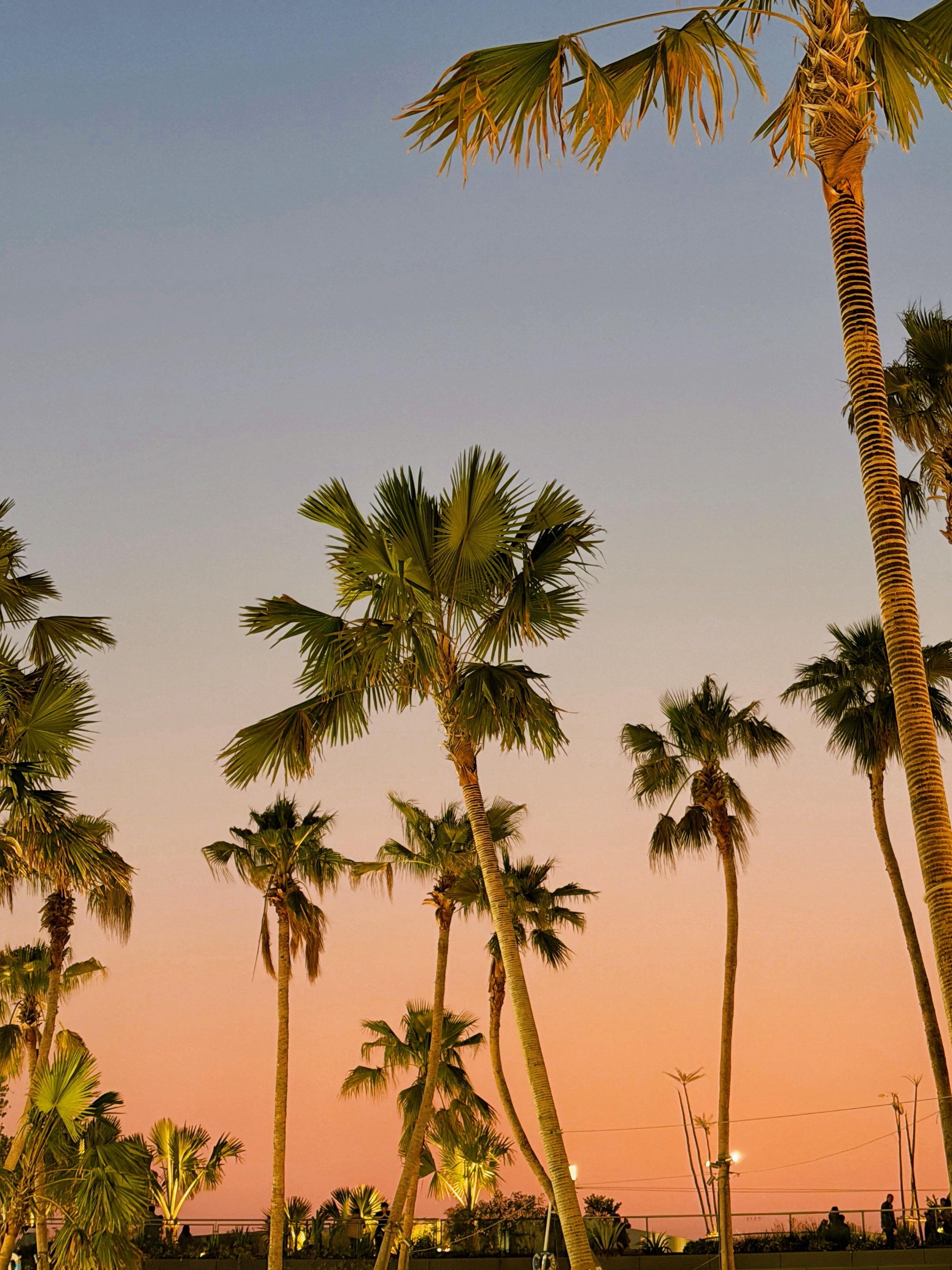 ‼️看到这个日落也理解了为什么会选址在这里 大家一定要从夕阳开始等到落日余晖 才能看到粉蓝色相间的加州日落景~那一排棕榈树实在加分👏🏻