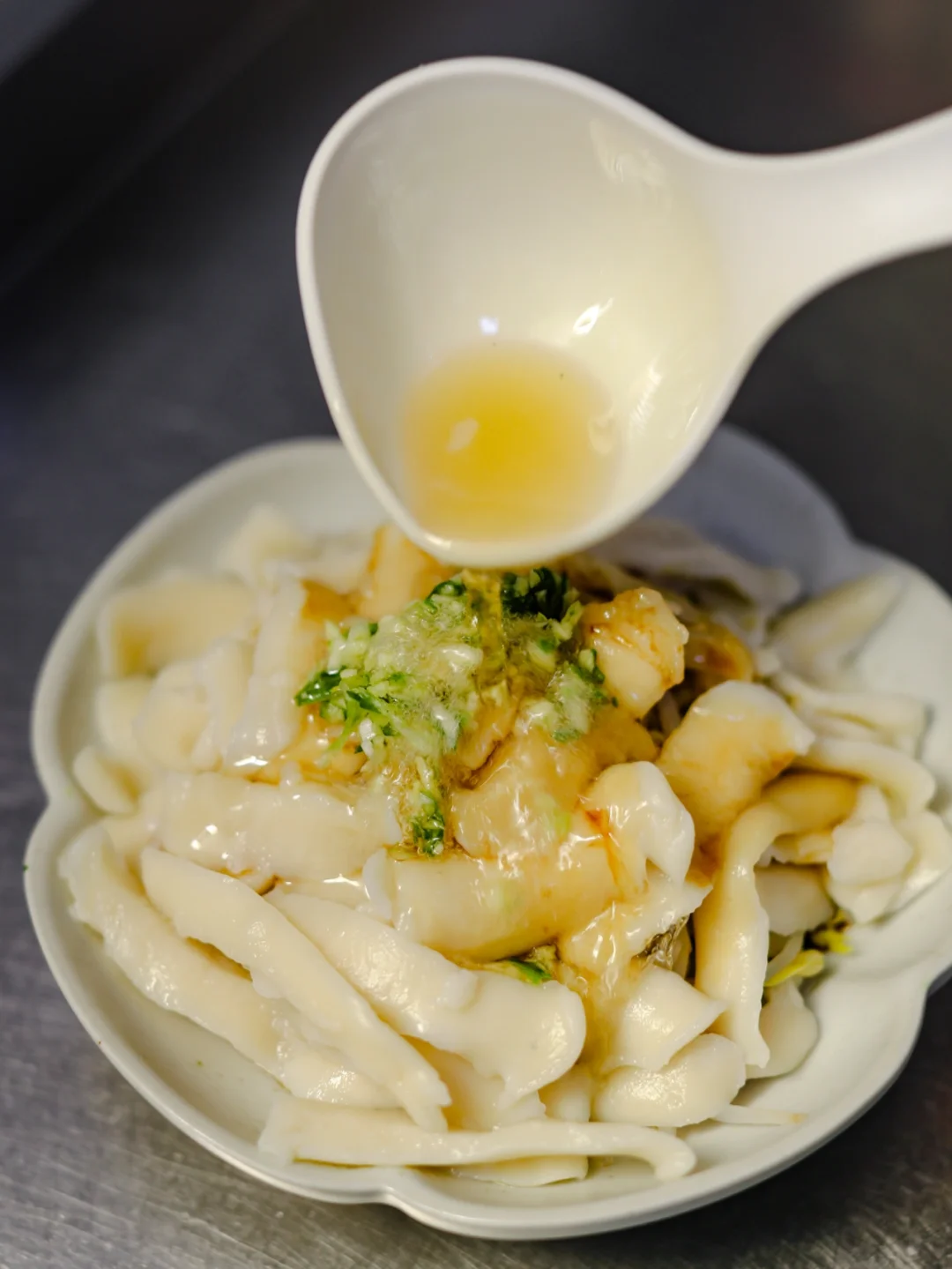 今天做了油泼刀削面,面是自己削的,由于没有那么大块的面,削出来的面条没有那么长,这是唯一美中不足的地方,其它一切都很完美。