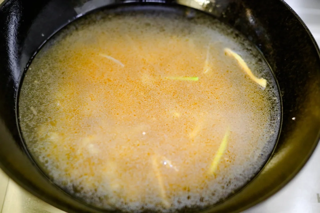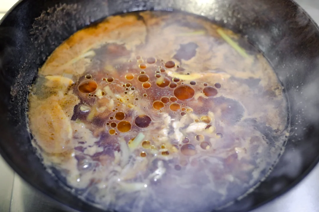 2.加入开水,滚开之后,加入白胡椒粉,老抽一点增色,中小火滚5分钟,淋上少许芝麻油,关火即可。