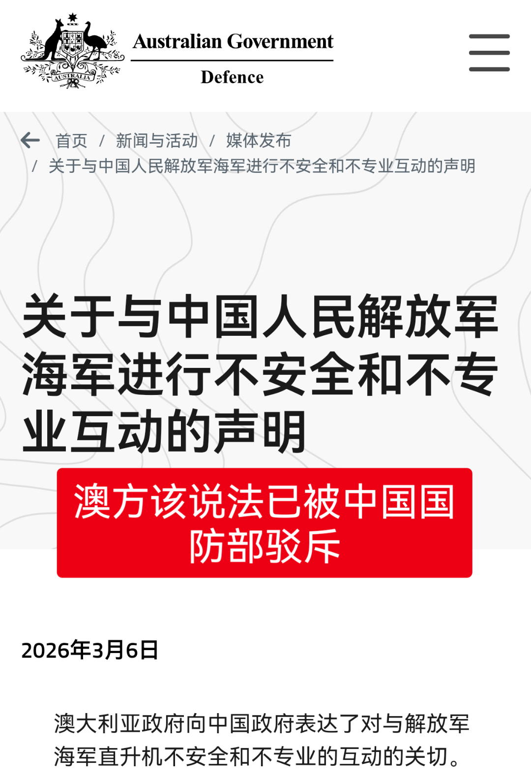 澳大利亚来黄海挑事儿,指责中国海军直升机不专业;遵义舰编队到塔斯曼海实弹演习,澳
