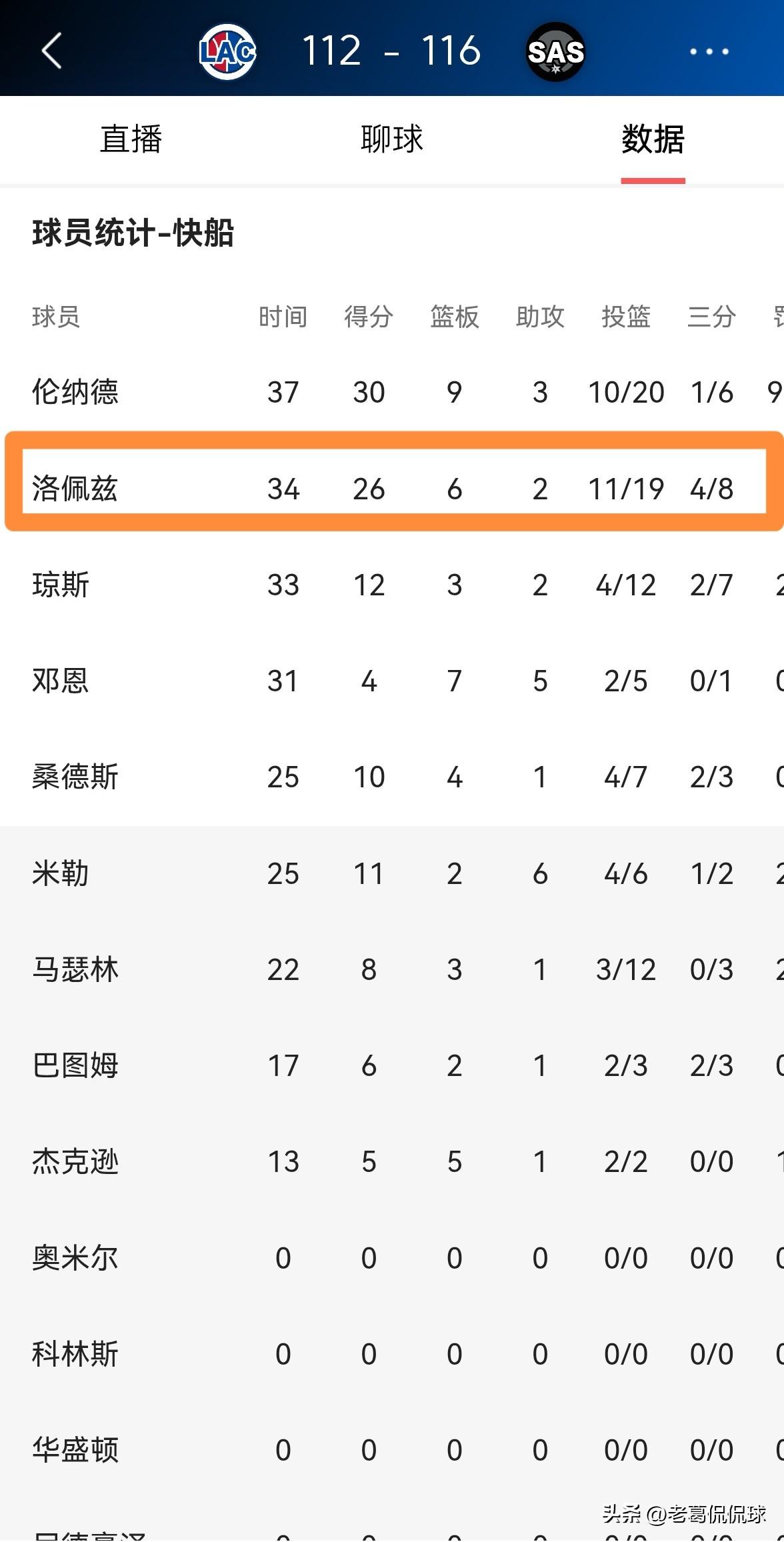 快船老将洛佩兹真是虽败犹荣!尽管今天快船在客场以112:116输给了马刺,但是洛佩兹却打出了非常具有说服力的表现,可以说是虽败犹荣。