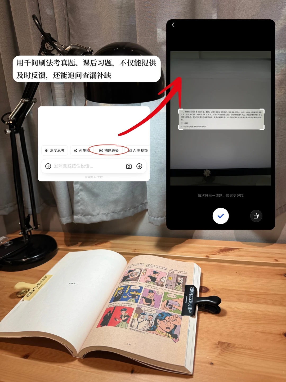 法学生懂的都懂,刷题肯定是少不了的。刚开学刷法考真题、课后习题没状态,不懂的题目少不了翻教材找答案,不仅费时,而且有时候看完还半懂不懂的,知识学得不透彻,下次遇上相似的题目就很容易踩坑