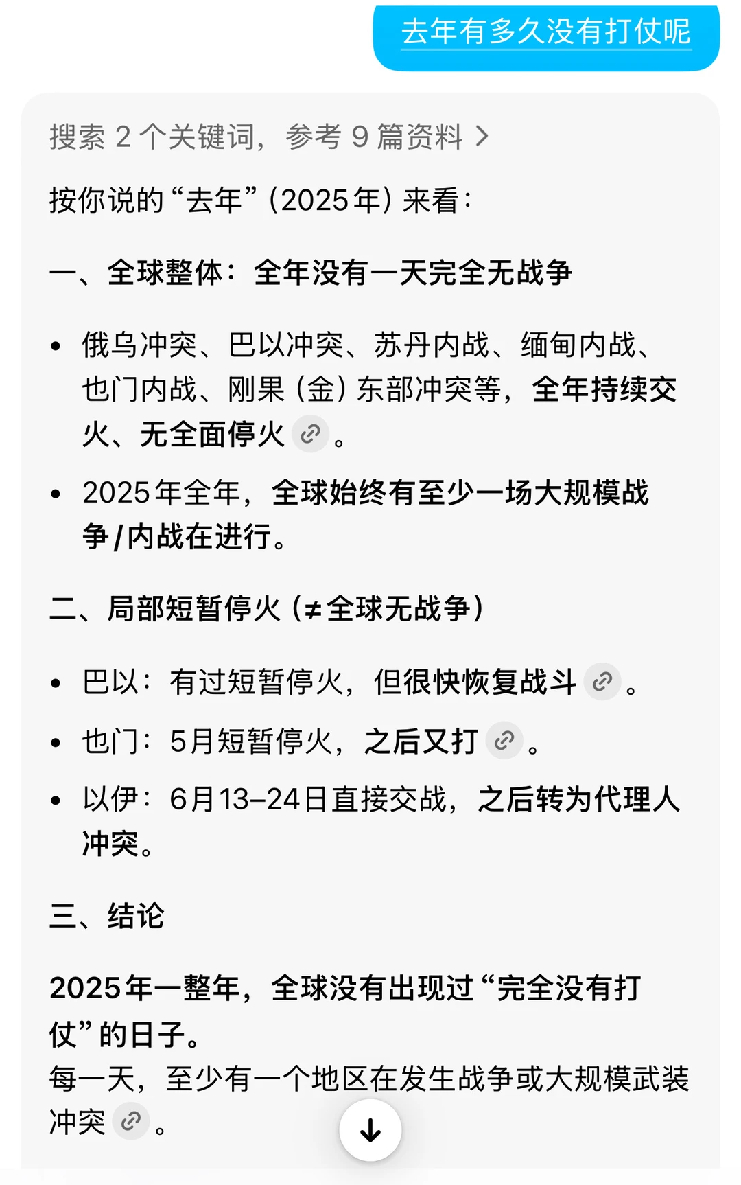 当我问豆包 去年有多久没有战争