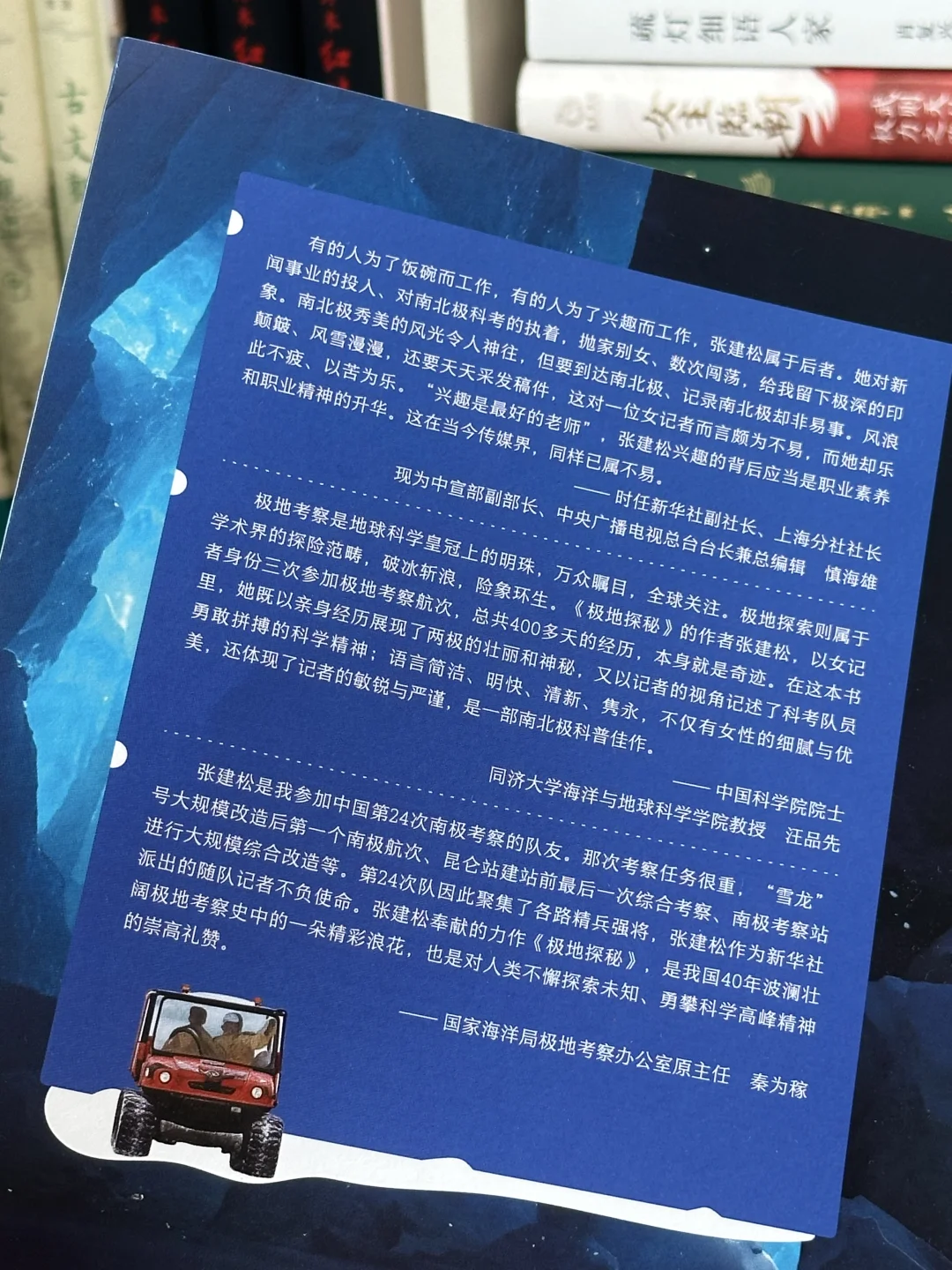 🔖这本《极地探险》是中国科学考察队随队记者张建松老师的力作,两赴南极、一赴北极,她用传神之笔和100余张现场照片,用心记录下400多天遇到的各种挑战,让我们在“雪龙”号一次次破冰前行中,有幸见证科学家和队员们的勇敢无畏。