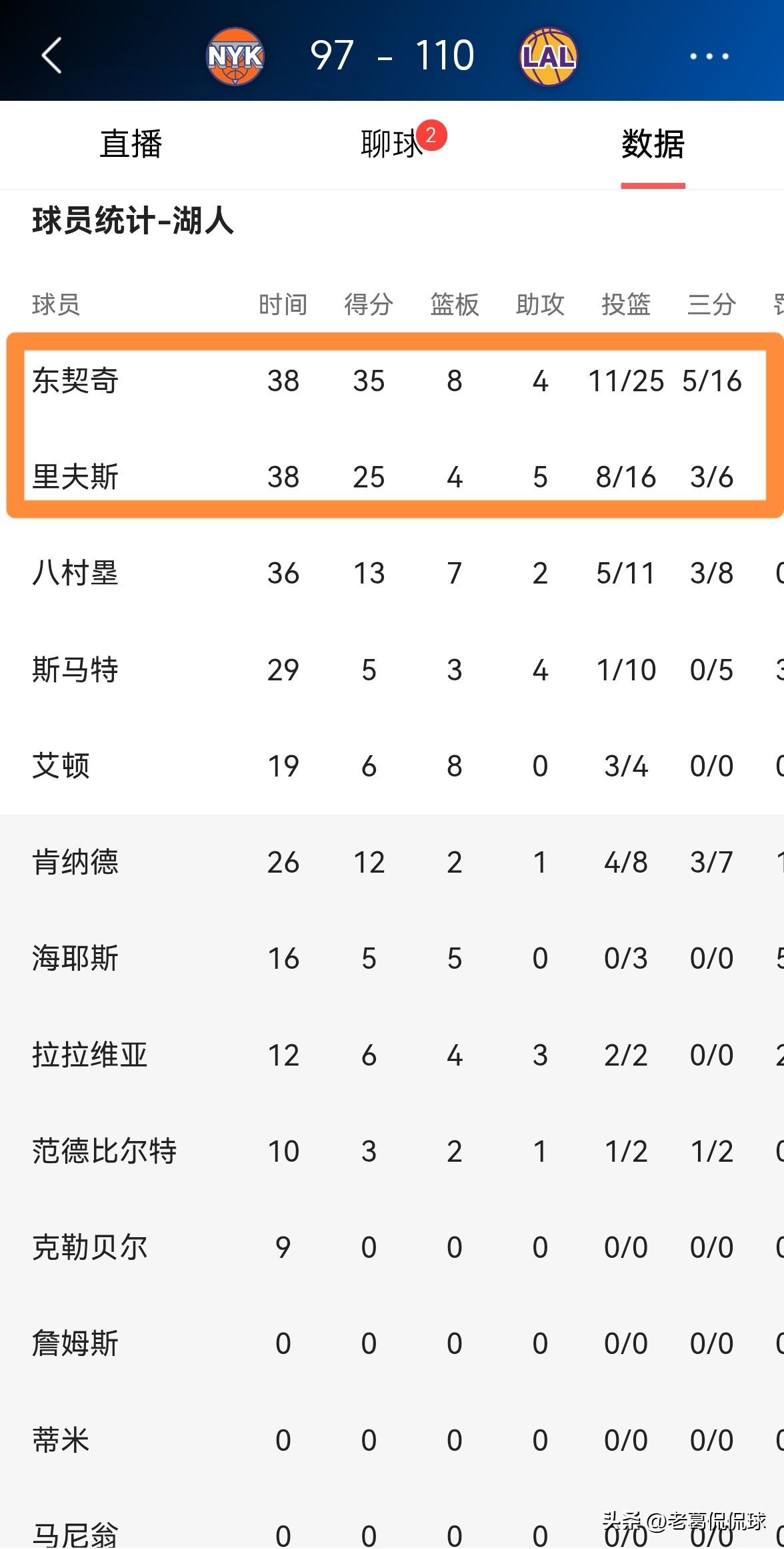 湖人官方真是太懂人情世故了!在今天湖人主场以110:97战胜尼克斯的比赛中,湖人双子星东契奇和里弗斯双双发威,两人合砍60分12篮板9助攻,为球队的获胜做出了巨大的贡献。值得一提的是,在比赛结束以后,湖人官方特意更新社媒,晒出了一张赢球海报,结果东契奇和里弗斯携手登上了赢球海报。