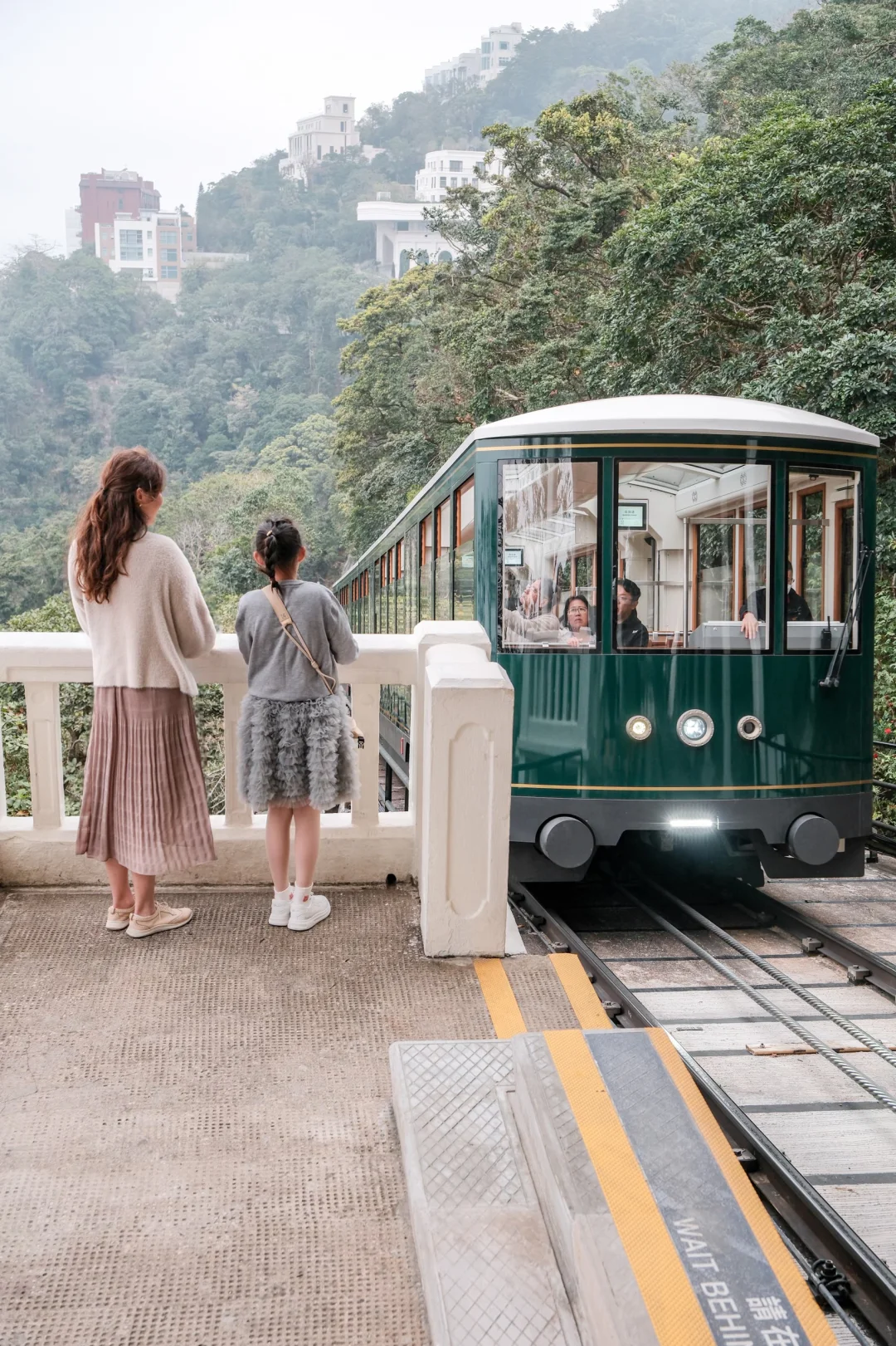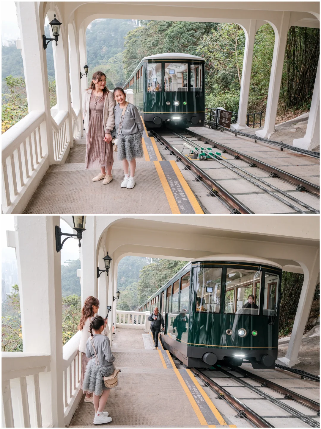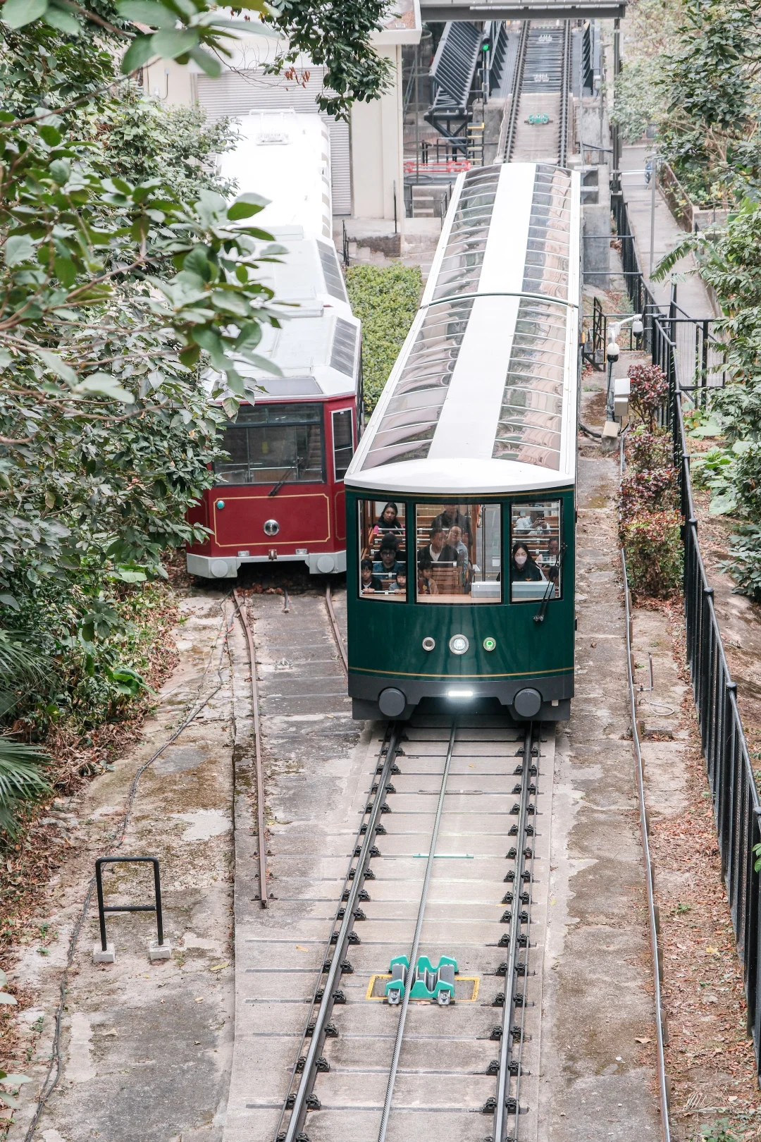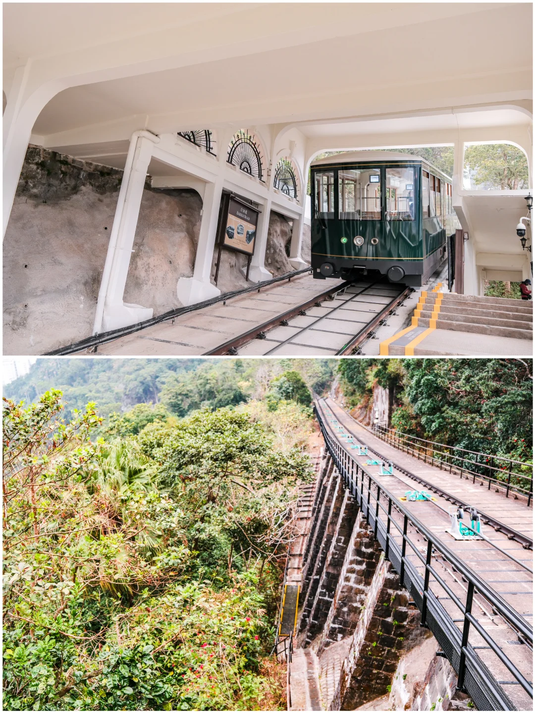白加道站是香港一级历史建筑🏛️,白色复古拱形站台被密林🌳包裹,缆车宛若从森林中驶出,古早文艺感十足。