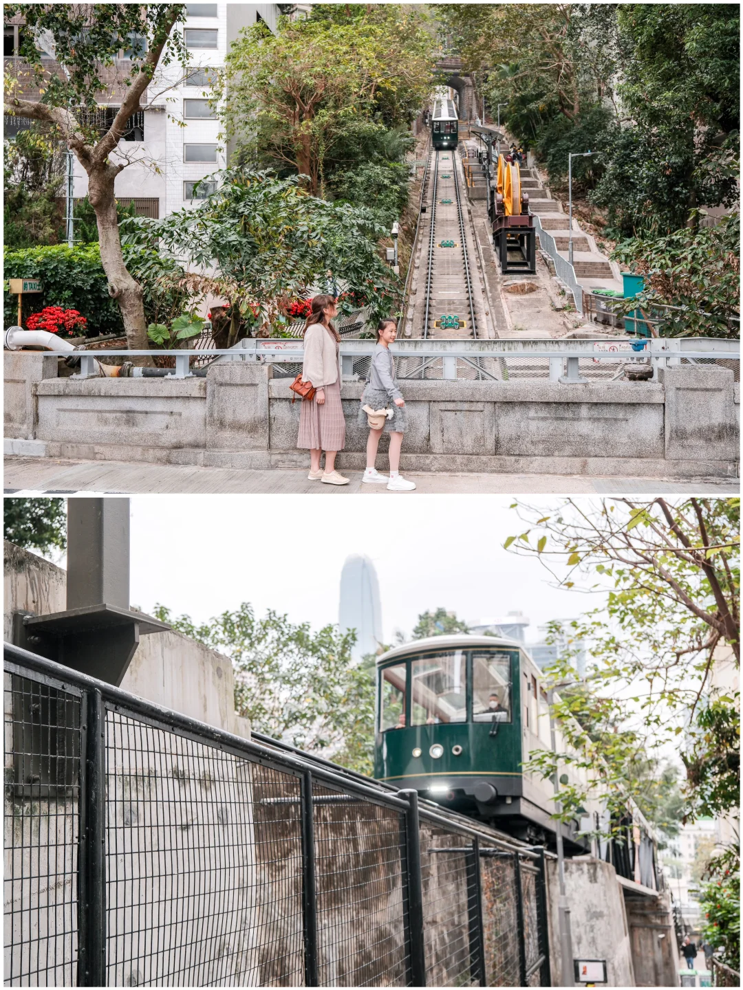 这里游客极少,主打复古与市井交融,能拍到悬空斜行的绿色缆车🚞,搭配下方穿梭的红色的士🚗,一动一静,拍出香港独有的小众画面,几乎不会撞款。