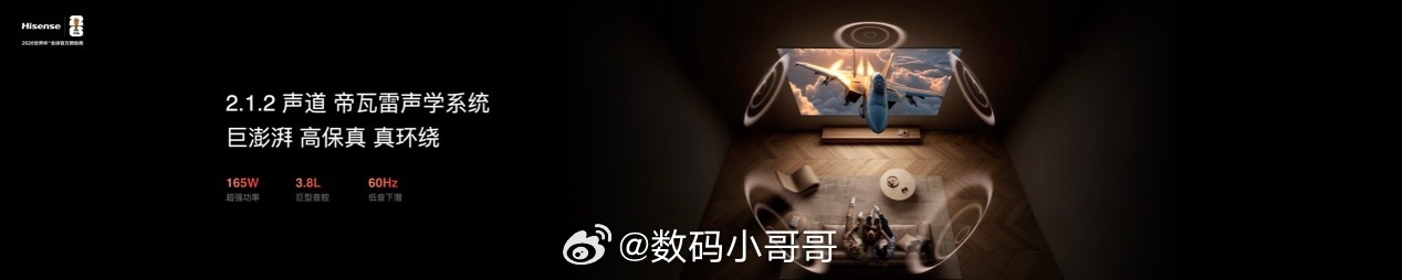 声学体验上,海信E7S Pro与跟帝瓦雷深度合作,打造了2.1.2声道声学系统,实现了60Hz的低音下潜与165W超强功率,前初音+侧环绕的黄金声学布局,让声音直面观众,低音沉得下去,高音也不刺耳,不用额外买音响,在家就能享受到影院级音效。