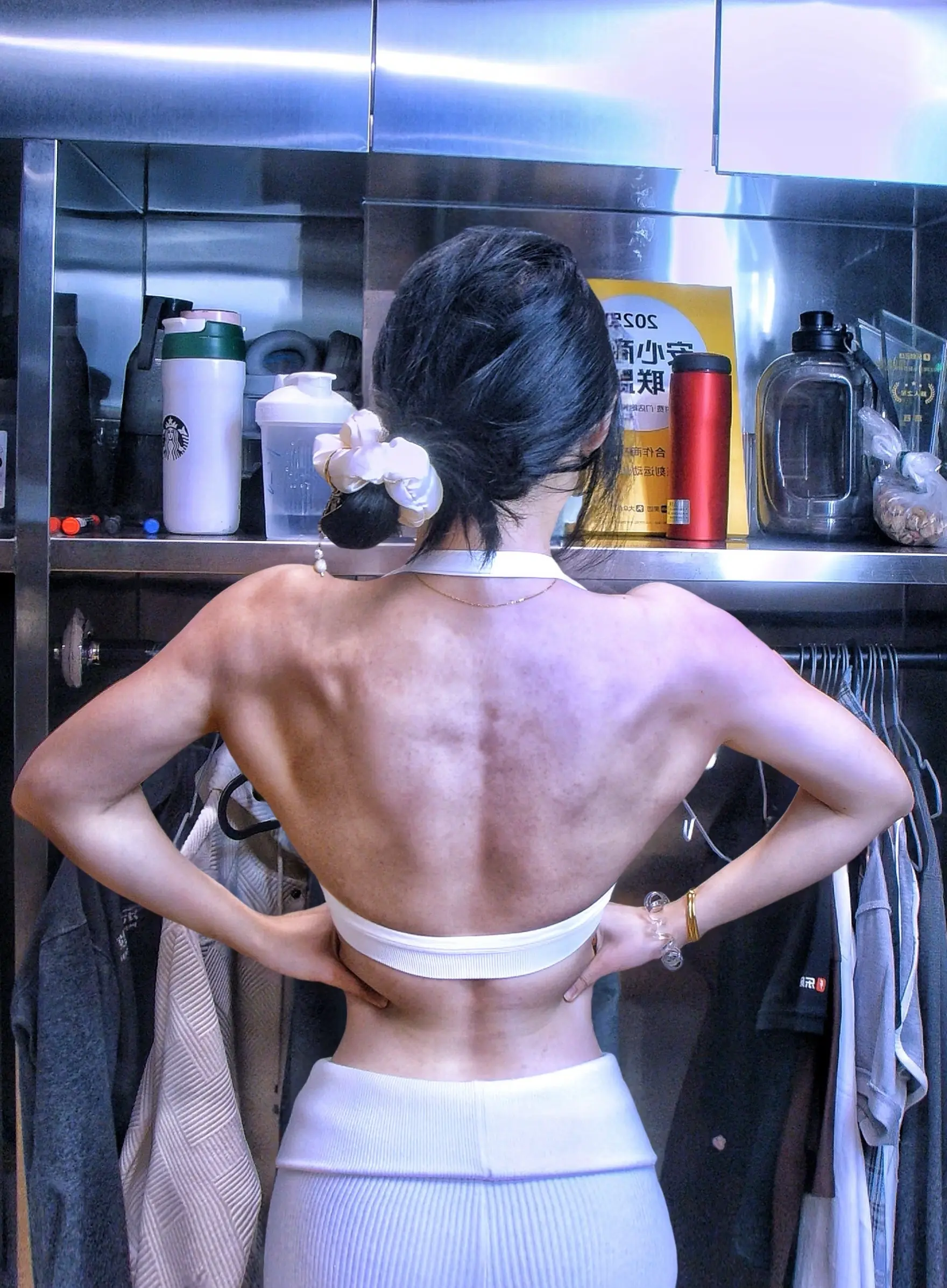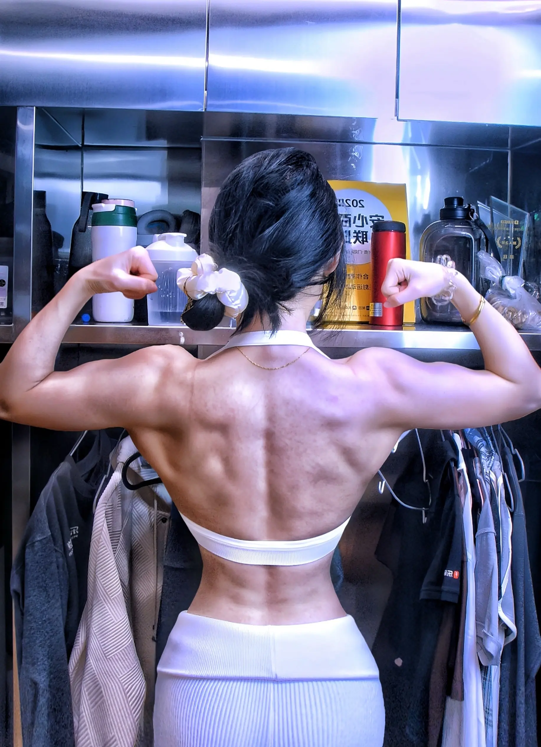 穿上衣服就看不见肌肉啦。今天狠狠推肩狠狠飞鸟啦 你们练啥