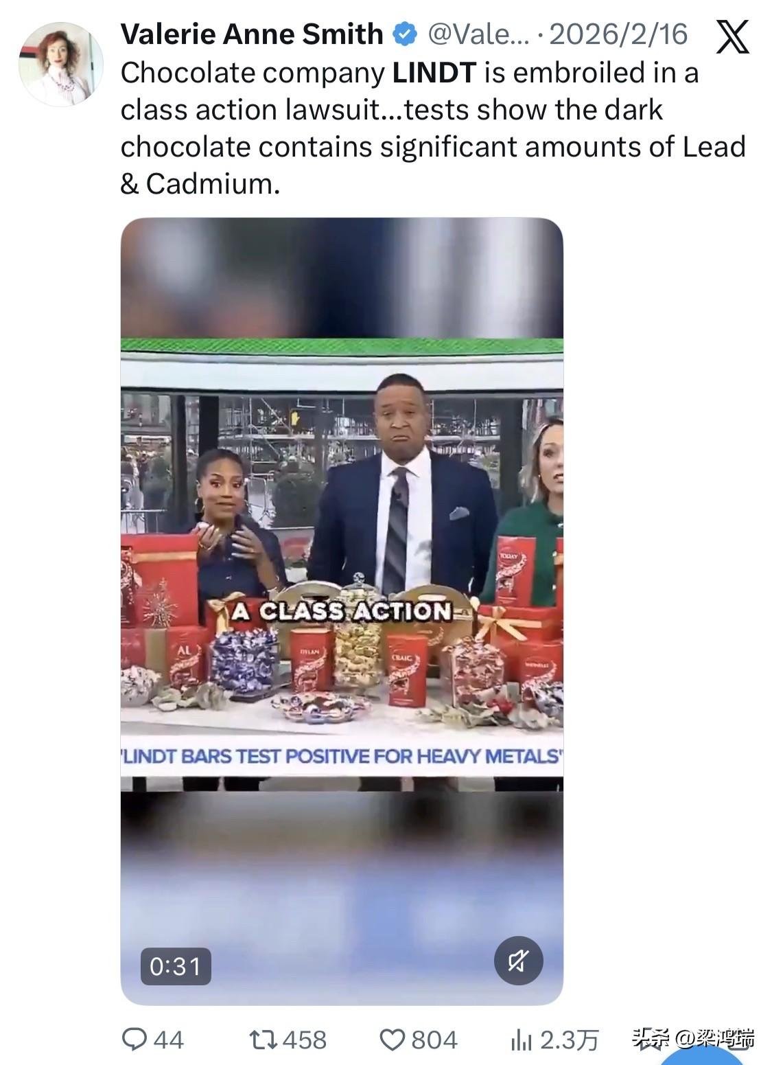 值得关注的一件事情,瑞士莲(Lindt) 被美国消费者集体诉讼!指控其黑巧克力棒中 铅和镉含量偏高!该案件仍在审理中。