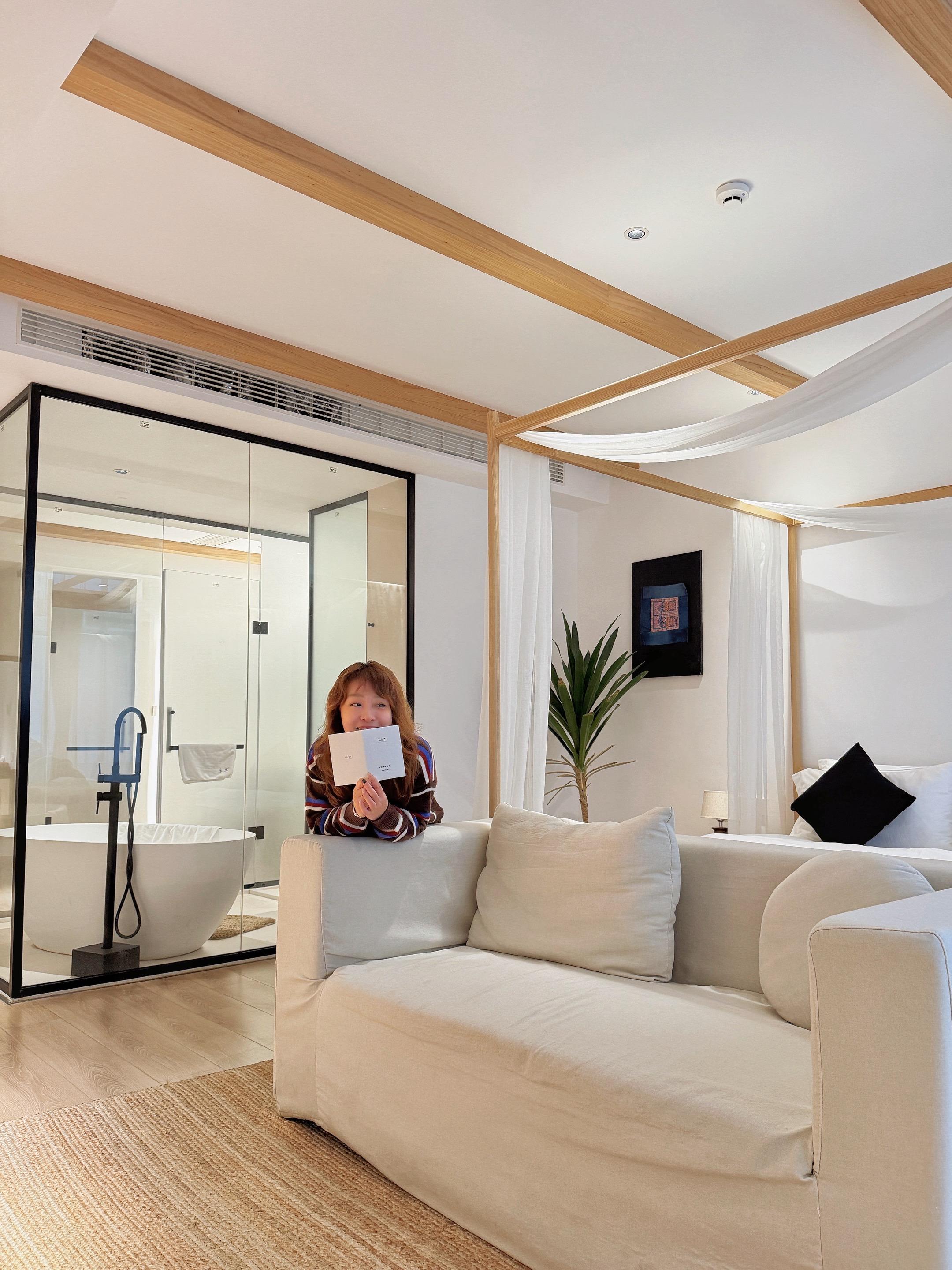 这次订的是设计师民宿,离高铁站超近,还提供免费接送站服务,提前加了我发了周边玩和吃的攻略,都不用自己做攻略了,入住还有下午茶和水果,那个小蛋糕好好吃!🍰