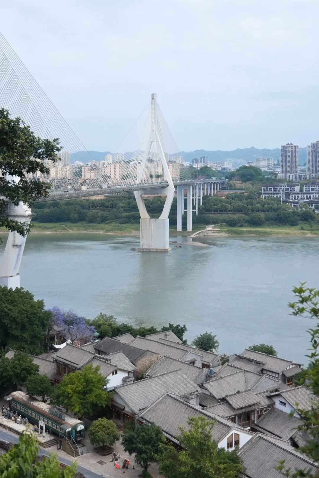 位于长江边,观光火车站就在旁边