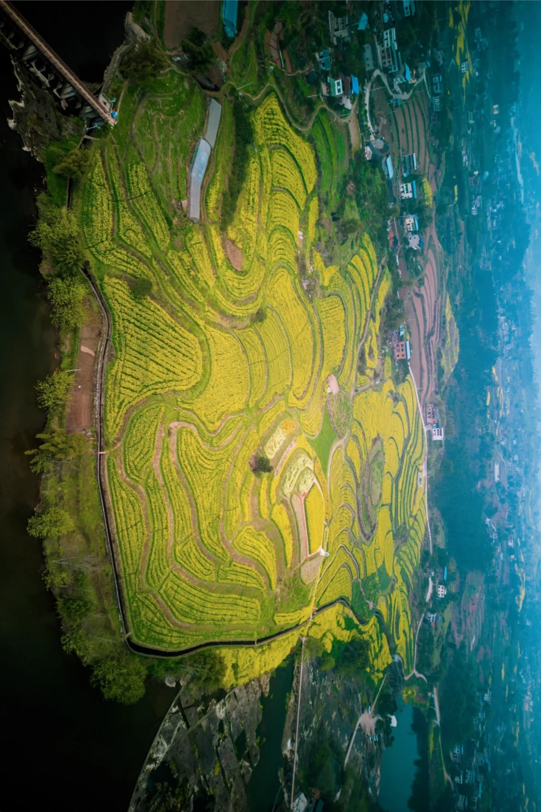 利用油菜花海的立体感和梯田般的层次感