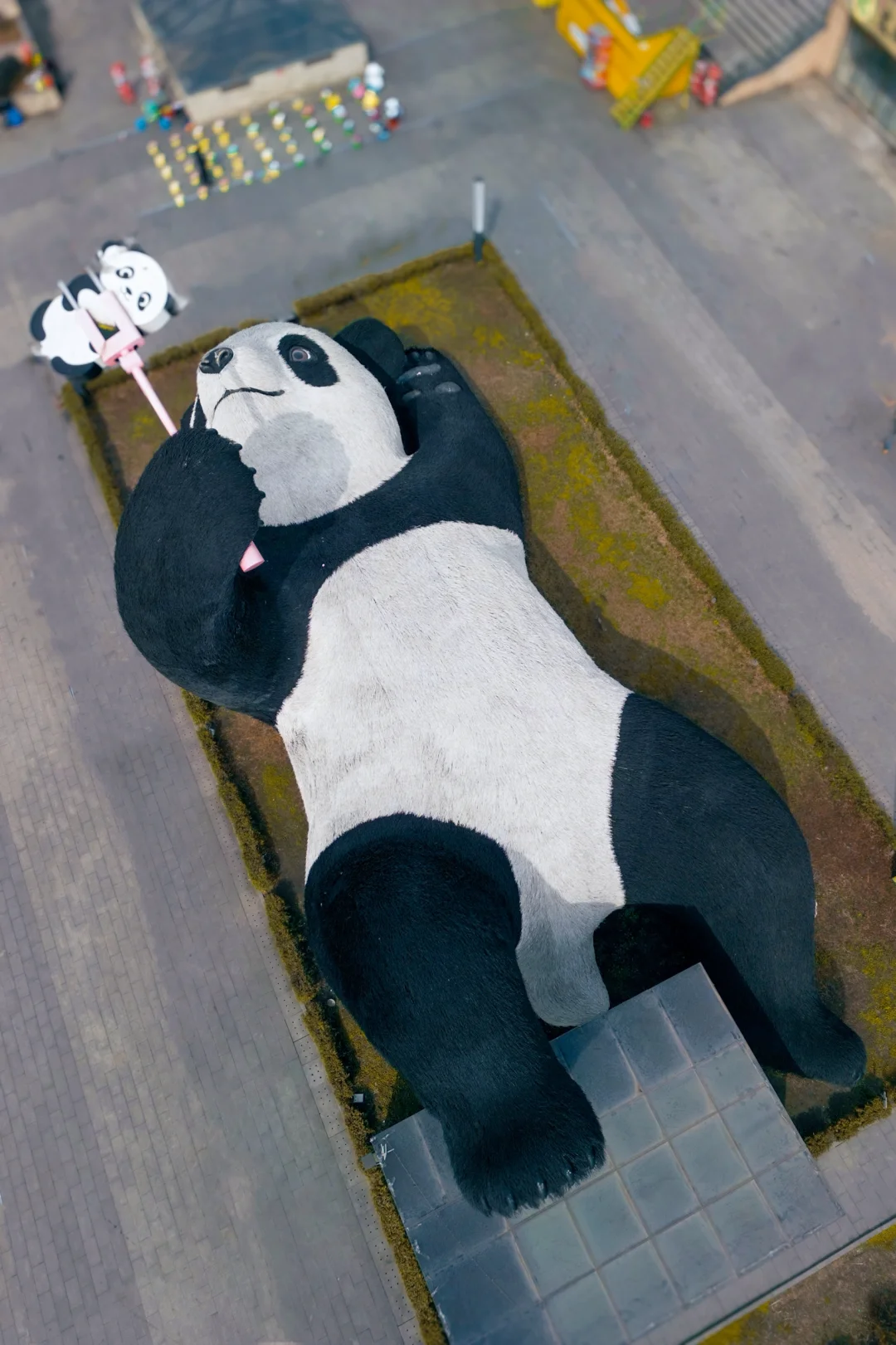 躺平的大熊猫举着自拍杆