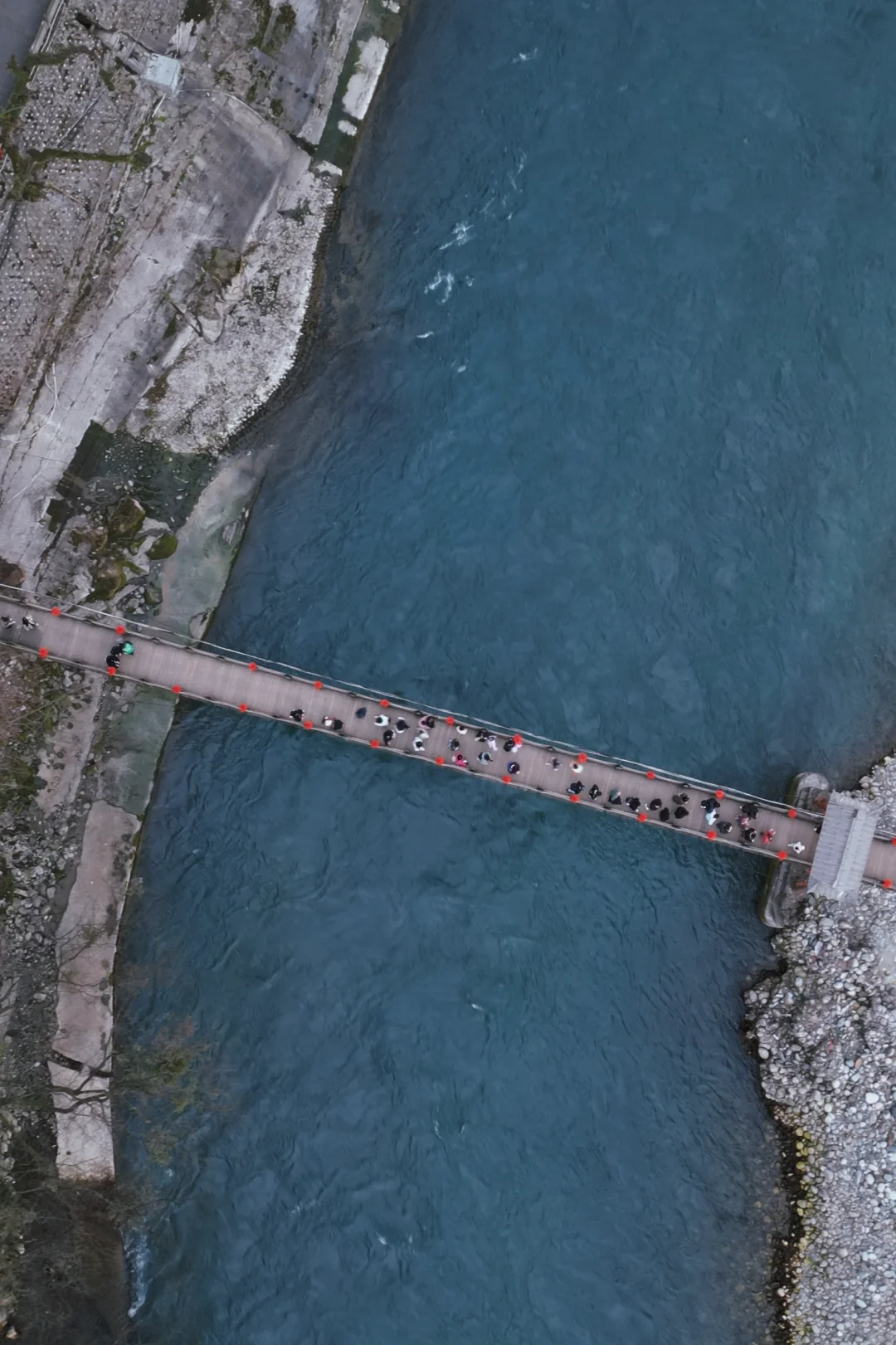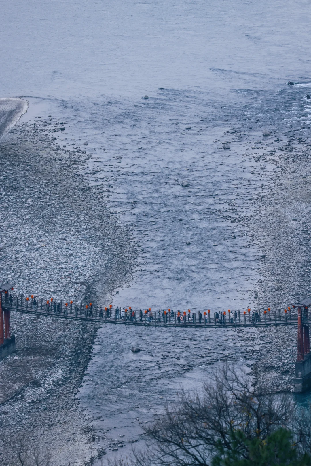 桥下岷江水泛着幽蓝光芒