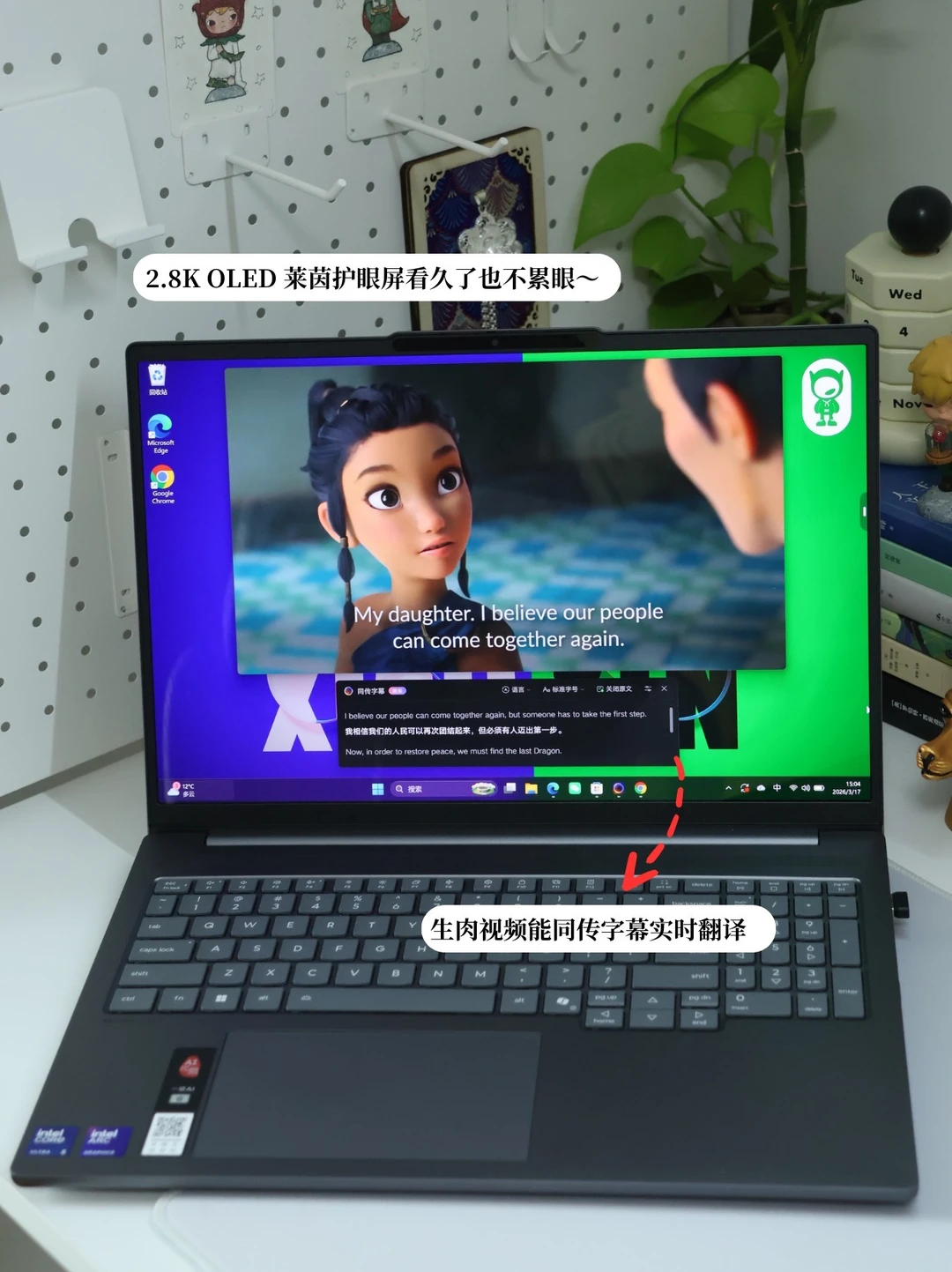 ②1.43kg 薄至 15.5mm 塞书包无压力,92.5Wh 大电池上一天课也够用,2.8K OLED 莱茵护眼屏看论文久了也不累眼;图书馆里用它,静音散热完全不打扰别人