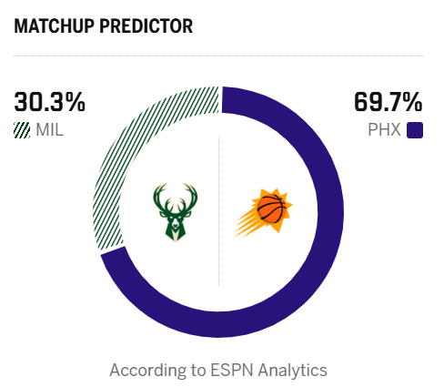 ESPN预测明日比赛:太阳胜率69.7%,雄鹿胜率30.3%