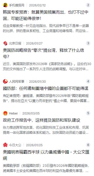 金荣敏的分析,其实也解释了为什么美国在2026年1月发布的《国家防务战略》报告里,口气突然变软了。这份报告不仅没再把中国列为“头号威胁”,甚至对台湾问题只字不提,反而把保卫美国本土和西半球利益放在了第一位。