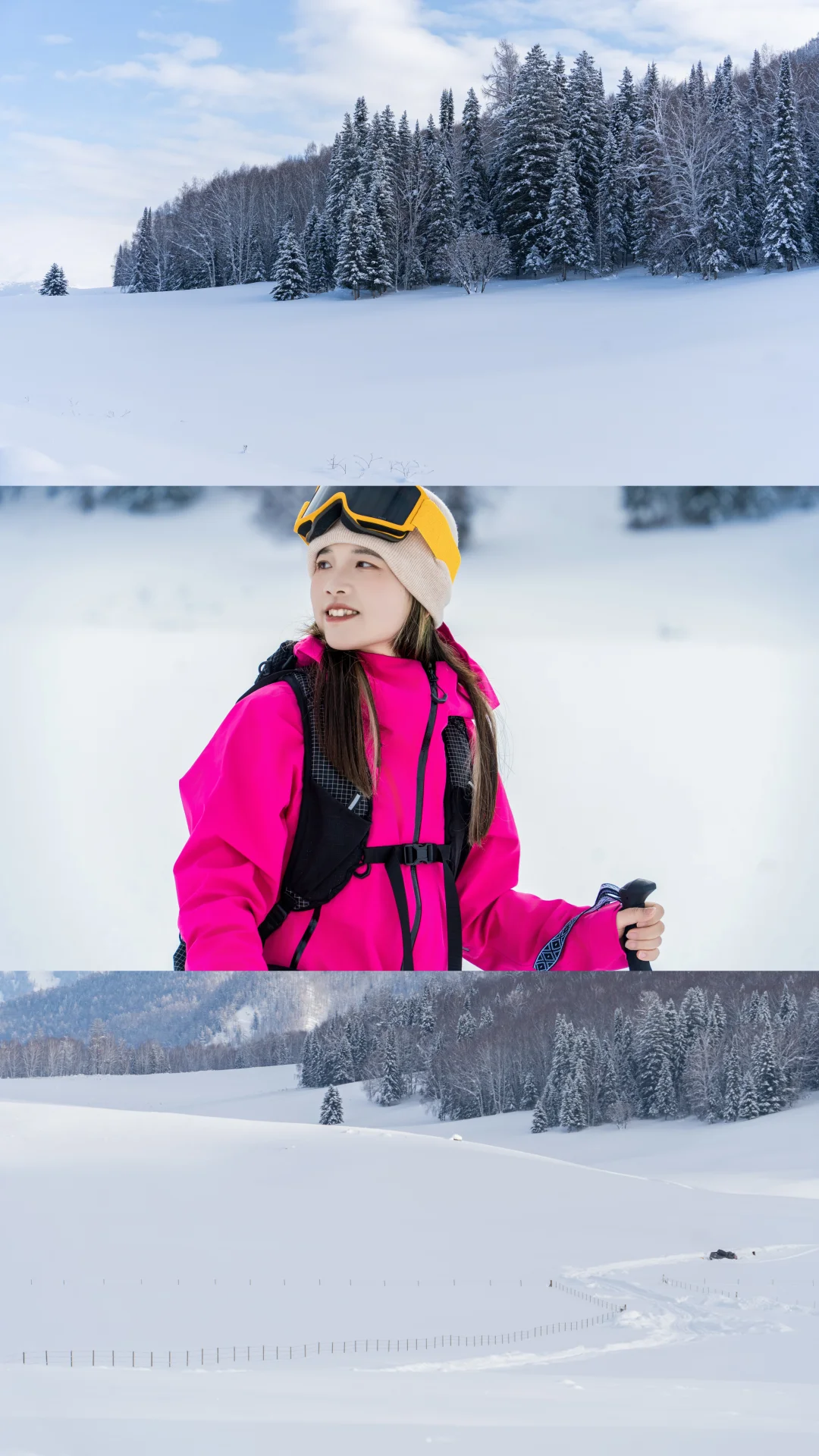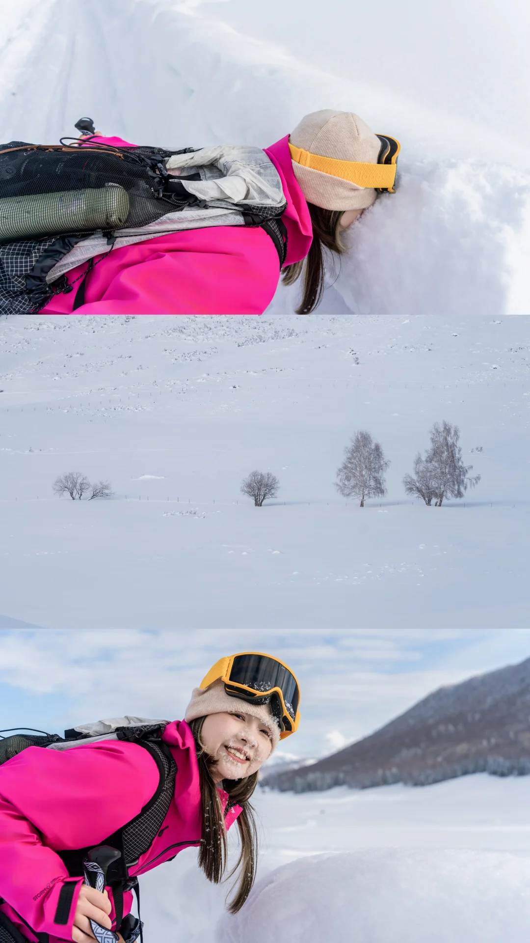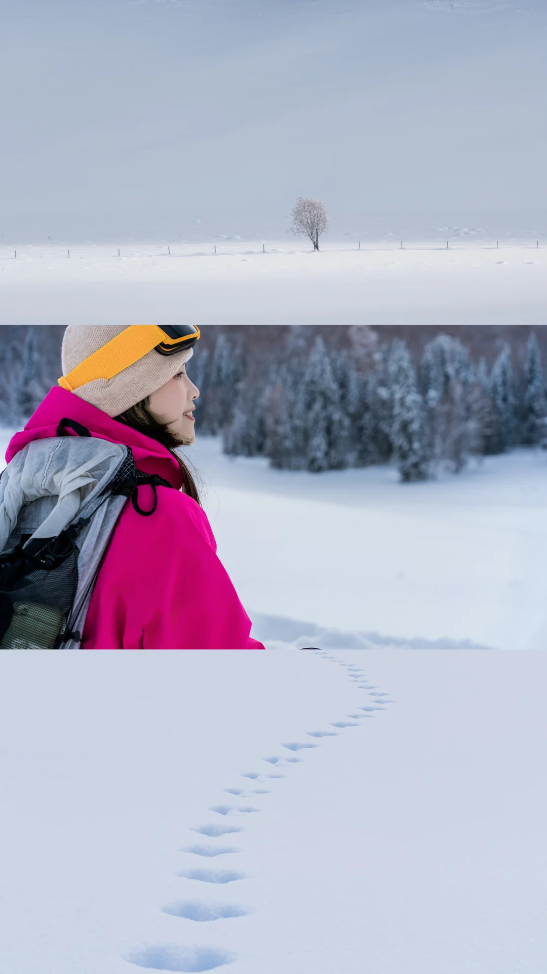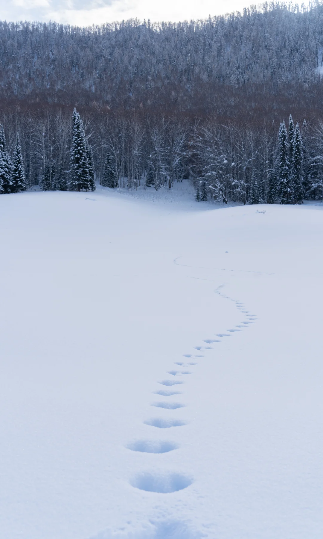 我们停下来拍照📸玩雪时,它也撒开欢儿,把脑袋埋进雪里拱来拱去,啃几口雪,或是像小兔子🐇一样蹦蹦跳跳在无痕的雪地上踩出小碎路,玩的超开心😆