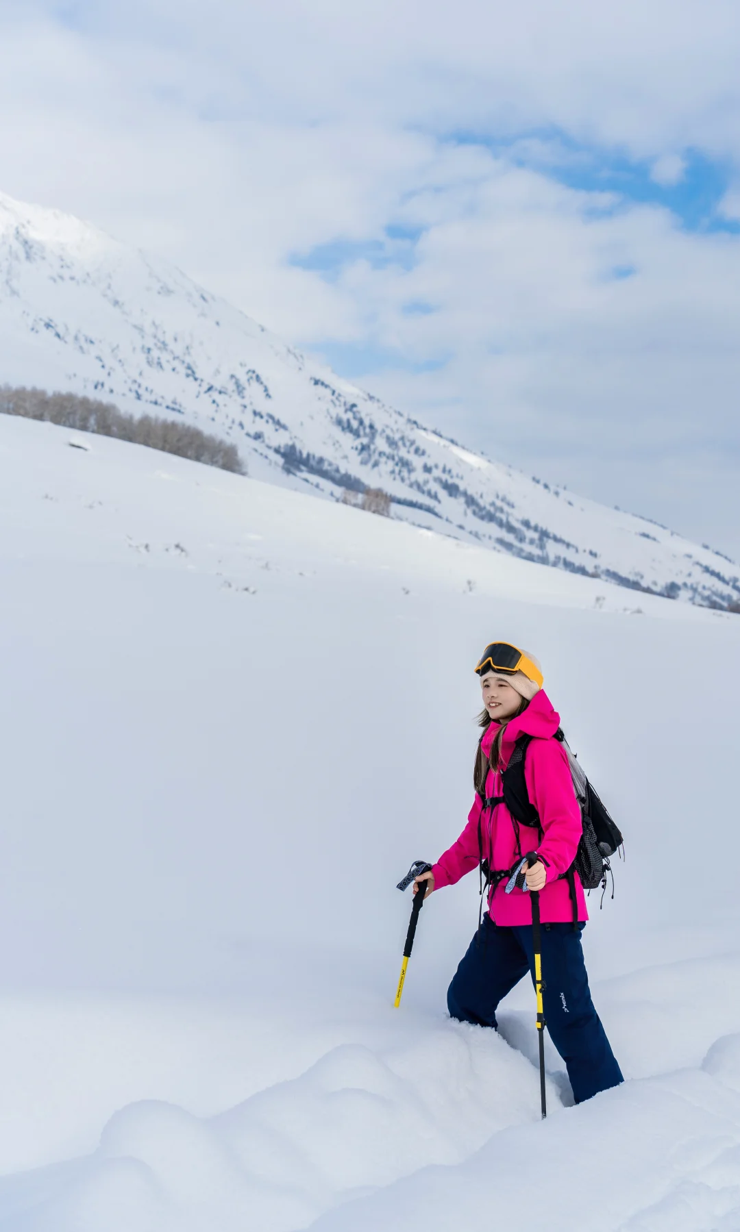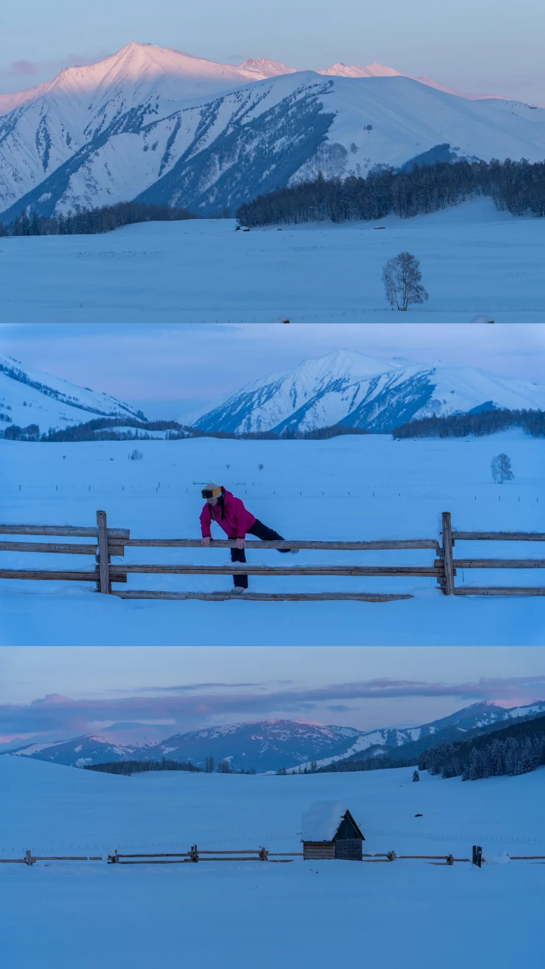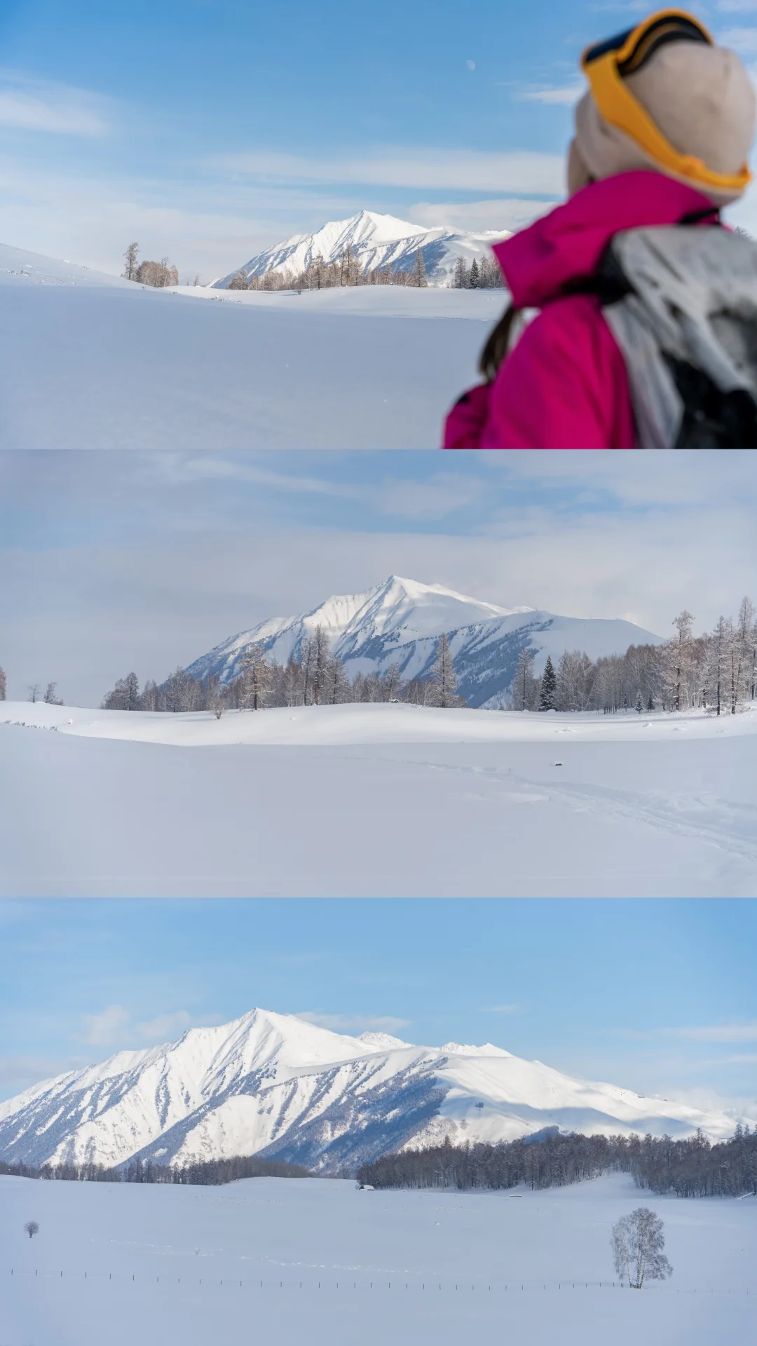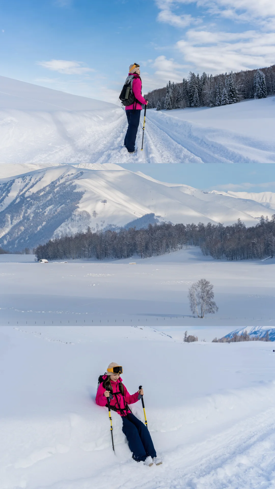 我们停下来拍照📸玩雪时,它也撒开欢儿,把脑袋埋进雪里拱来拱去,啃几口雪,或是像小兔子🐇一样蹦蹦跳跳在无痕的雪地上踩出小碎路,玩的超开心😆