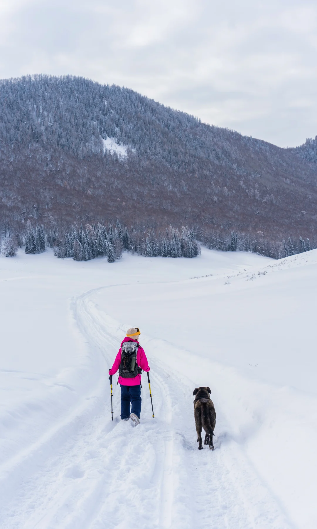 小狗🐶果然是四驱的,走得飞快,却总不忘回头看我们有没有跟上,走快了就干脆趴雪地🌨️里等,拐过弯见不到人,还会折回来找我们,生怕把我们弄丢。