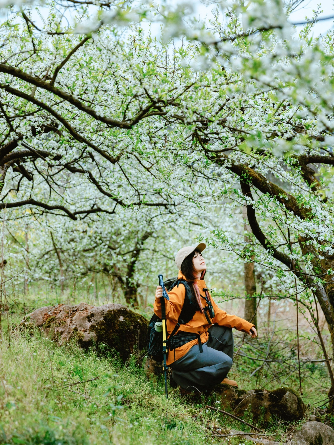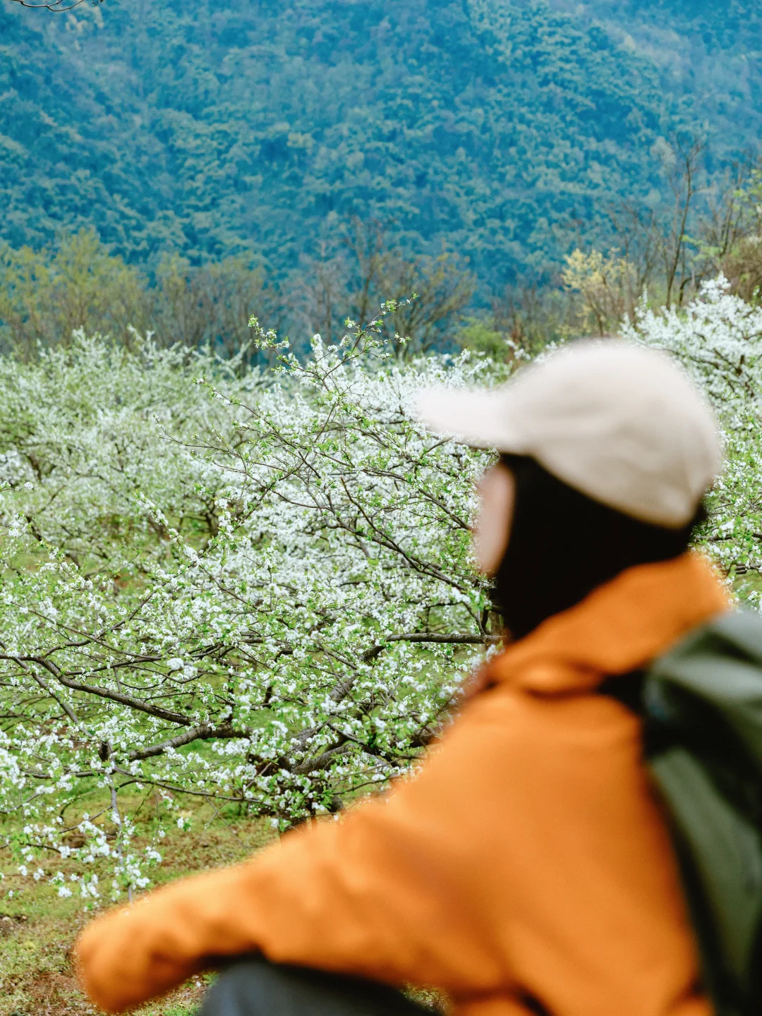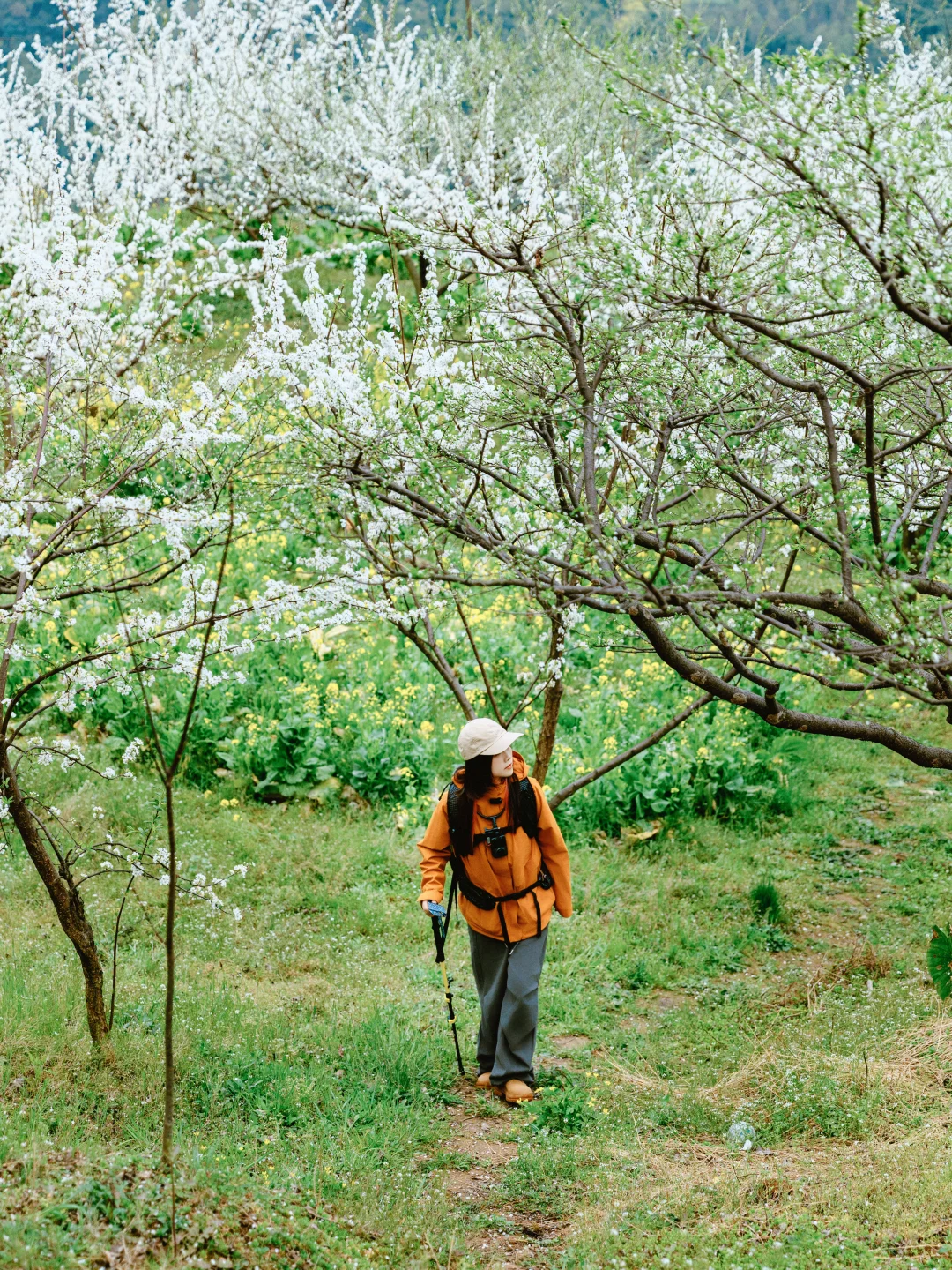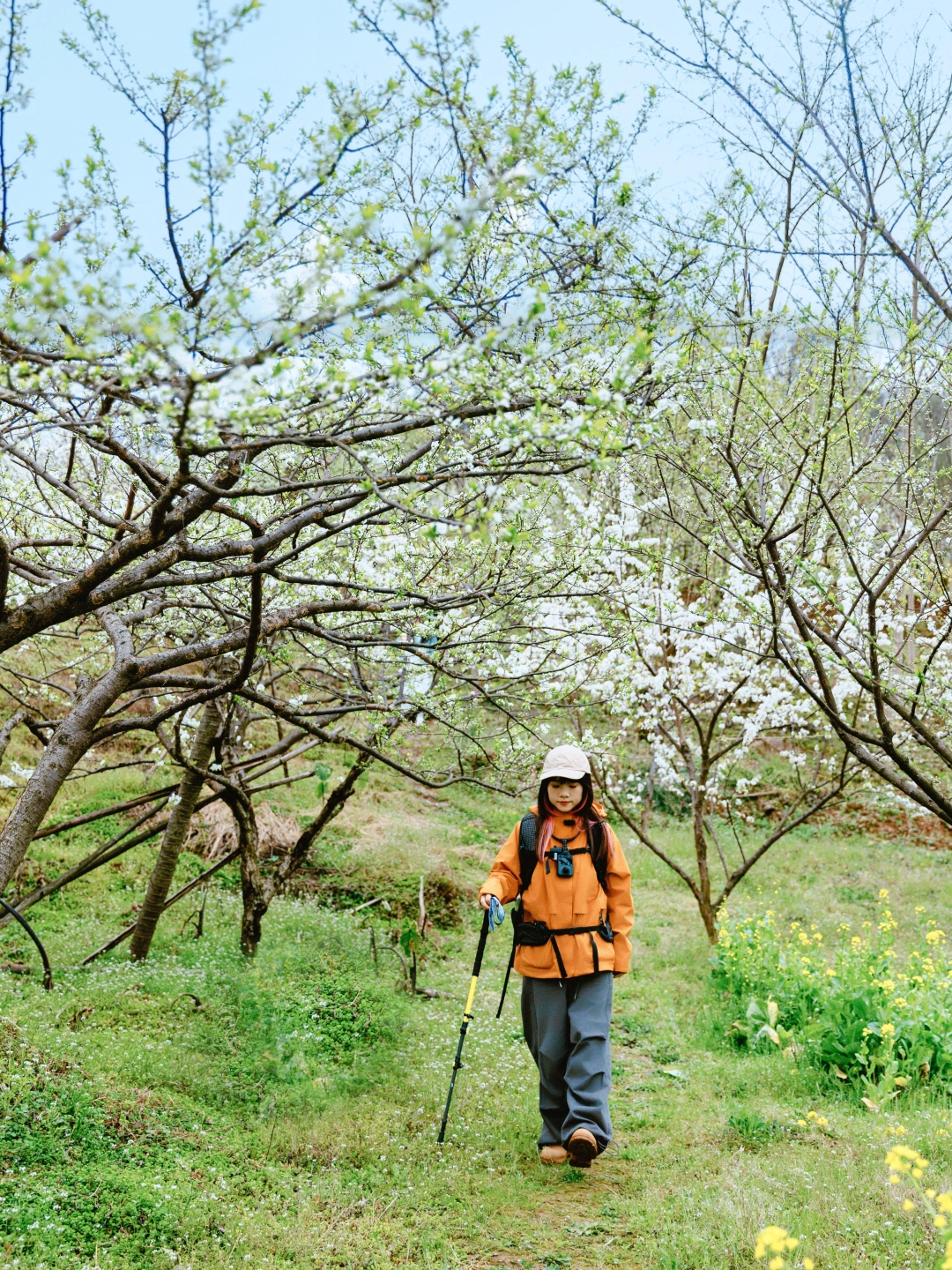 边徒步,边赏花,微风一吹,花瓣飘落,阵阵花香