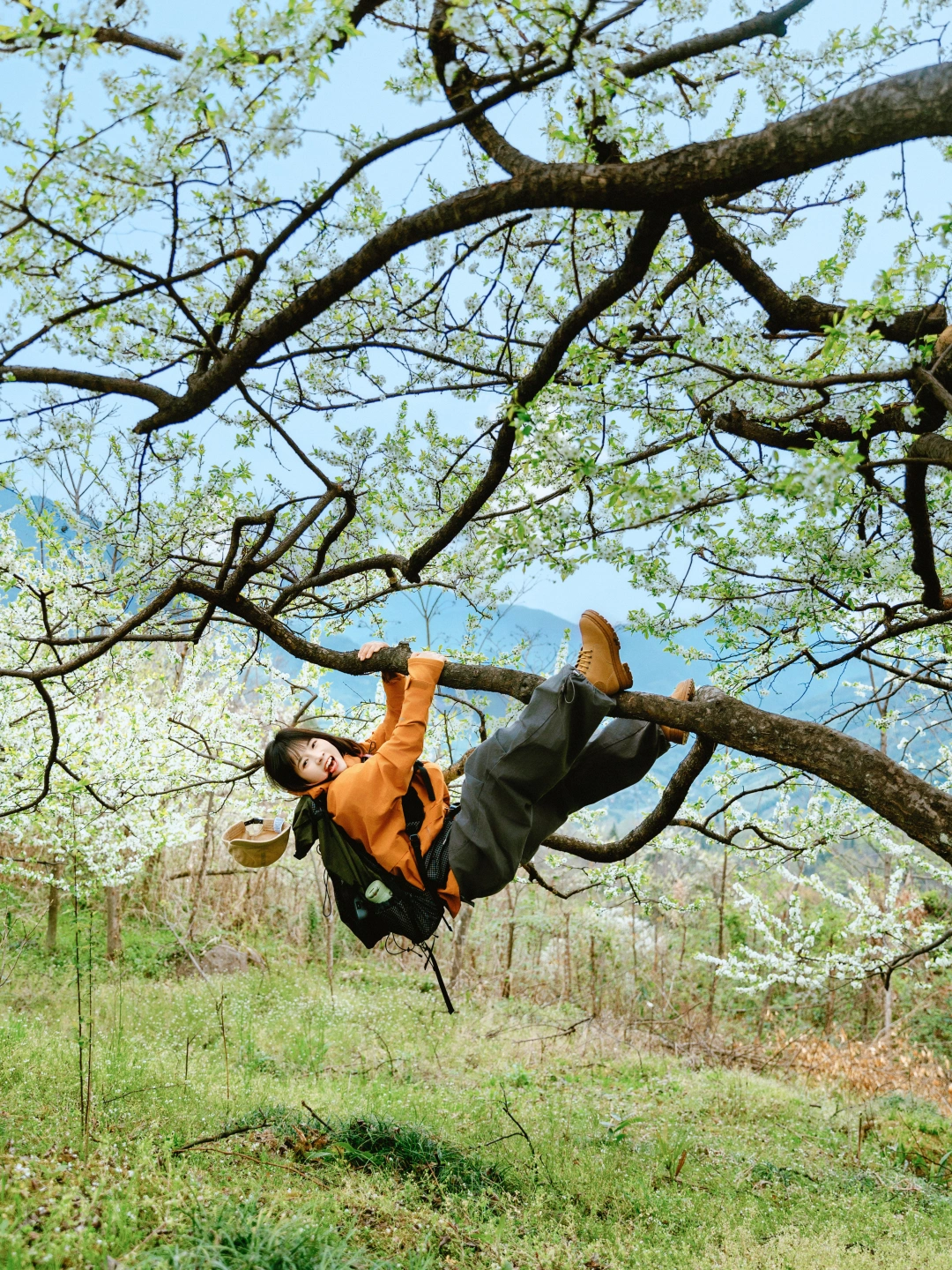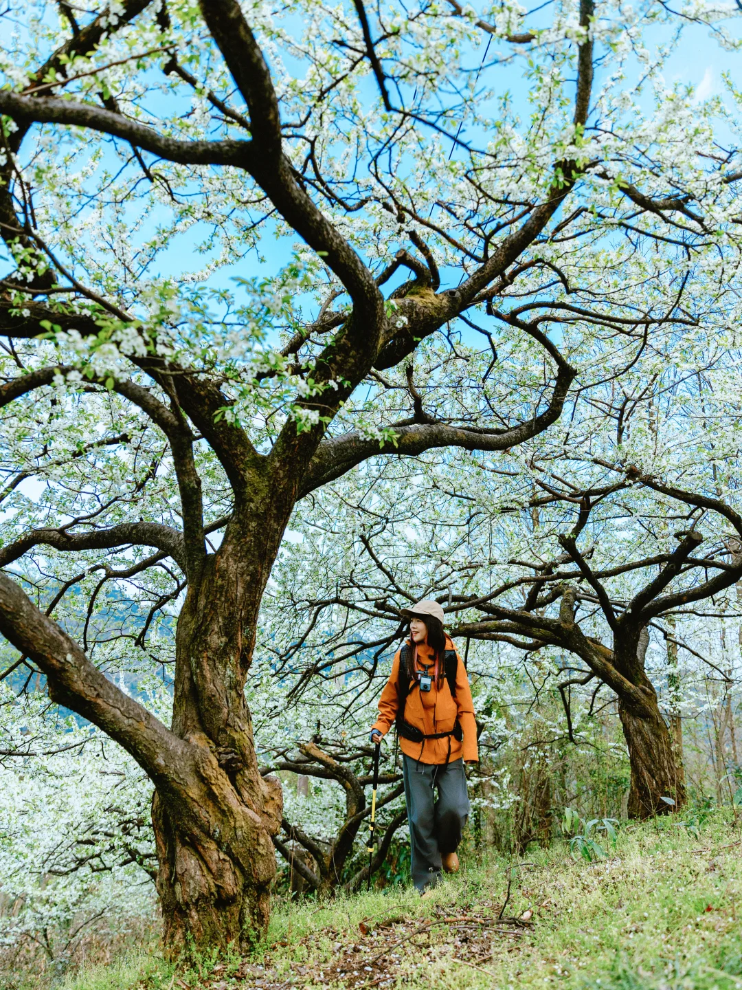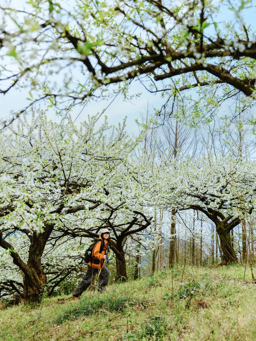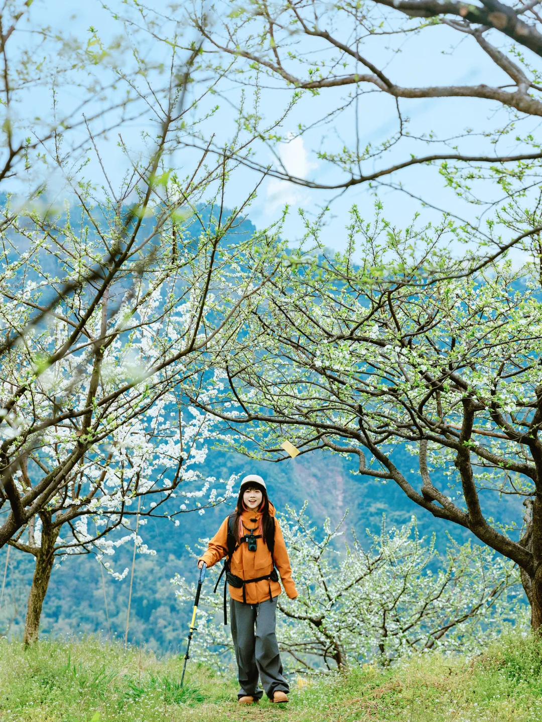 边徒步,边赏花,微风一吹,花瓣飘落,阵阵花香