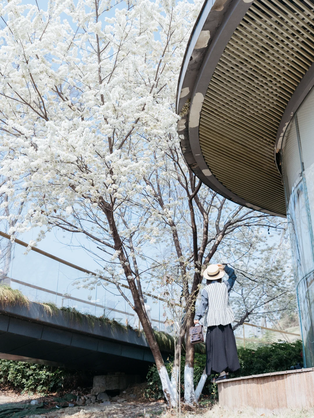 桂溪公园挺大的,到了公园可以再导航具体位置“成都兴城租售中心”,这里有白色的桥,站得高所以可以近距离接触樱花,还可以站在桥上高机位拍桥下,就合适拍人像哟