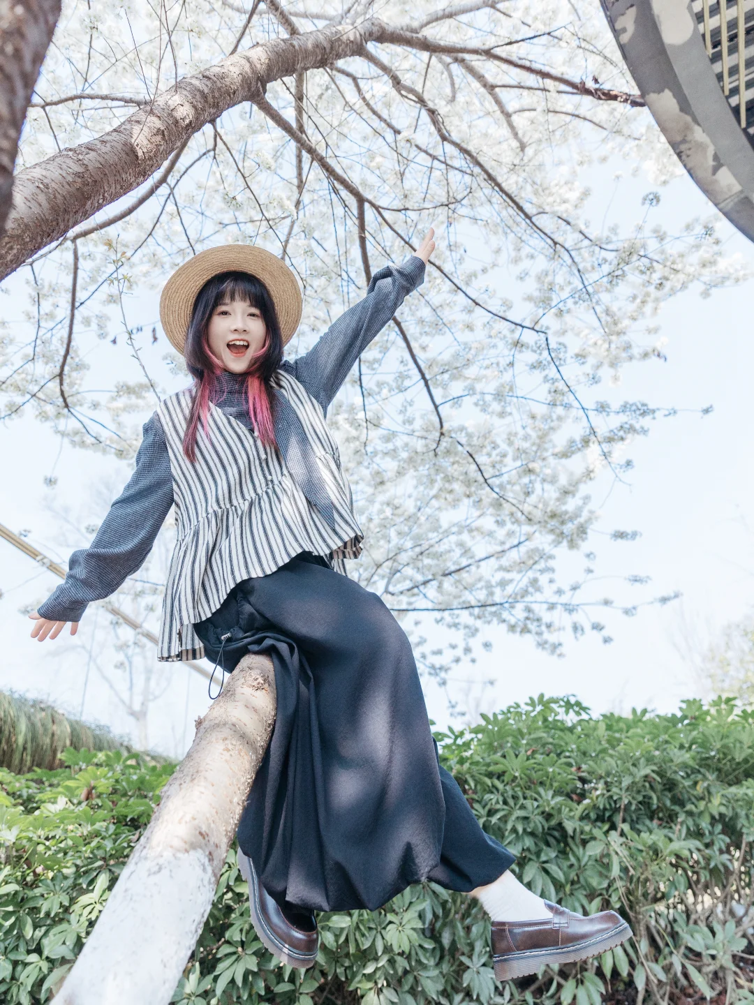 7️⃣坐树枝上,面对镜头大笑