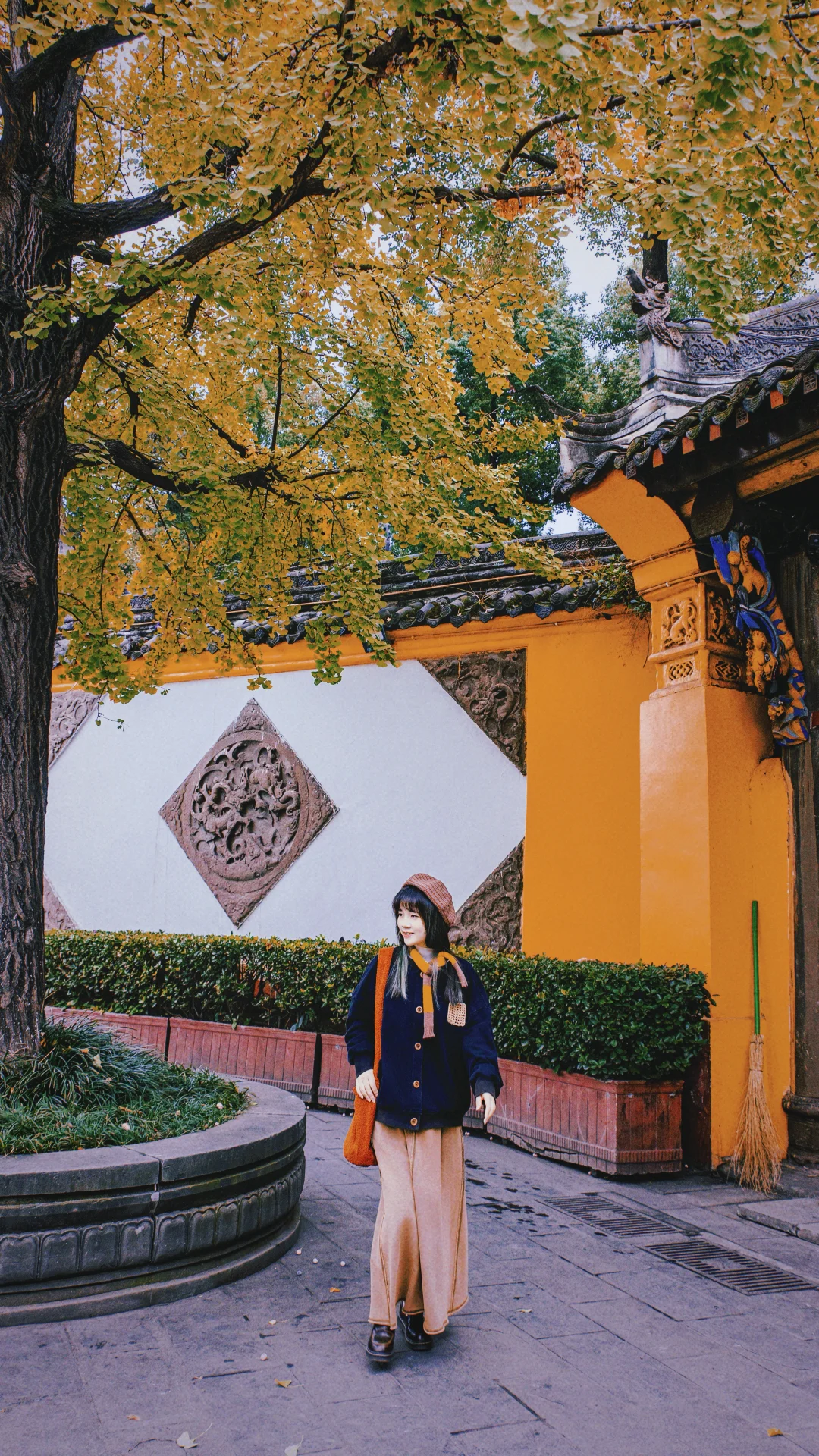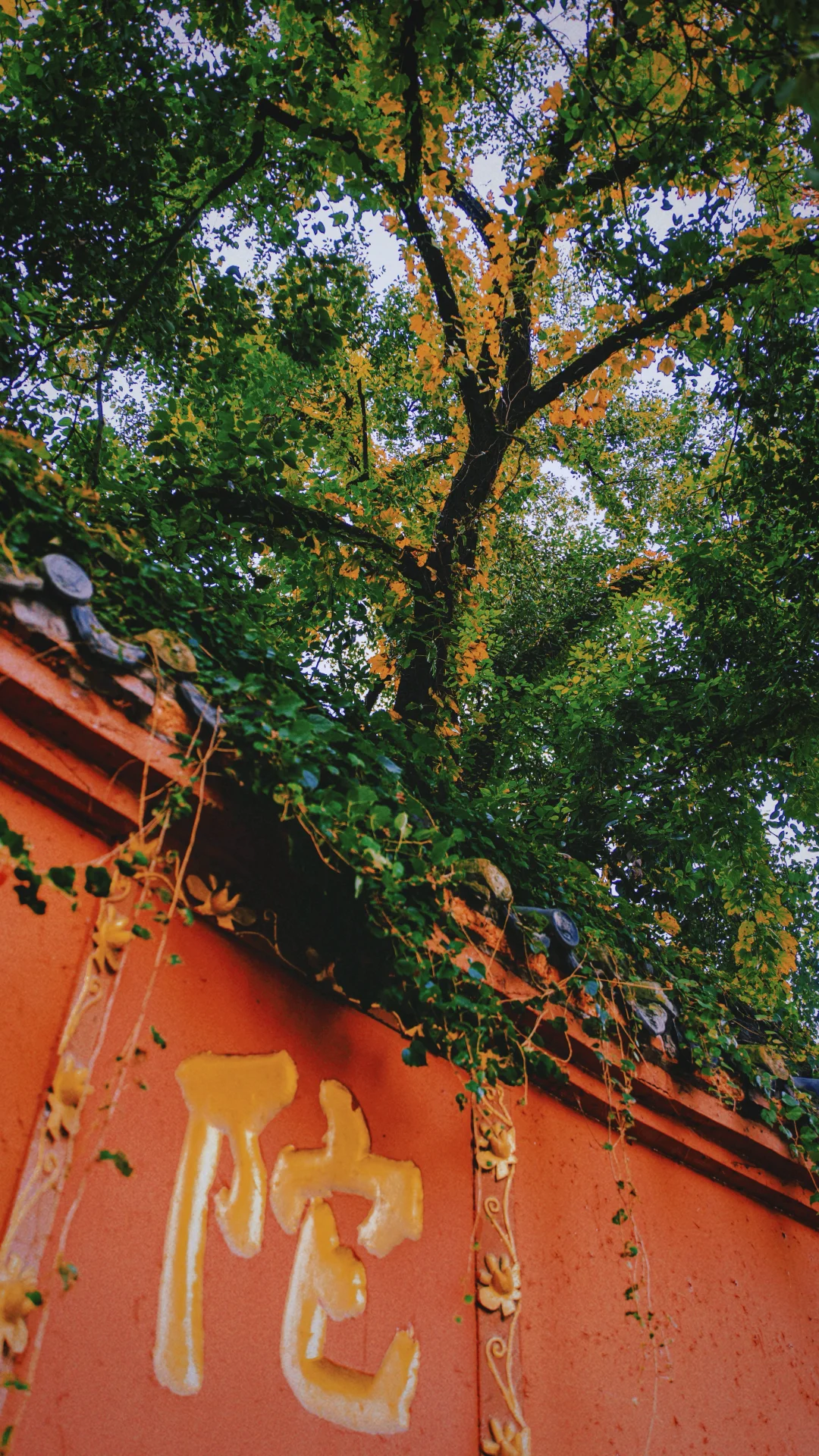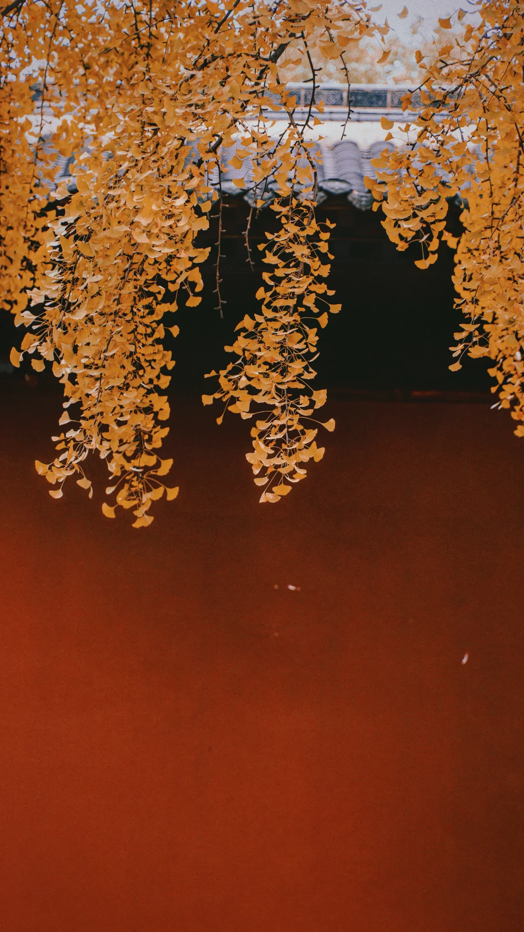 金黄的银杏配上寺庙特有的红墙