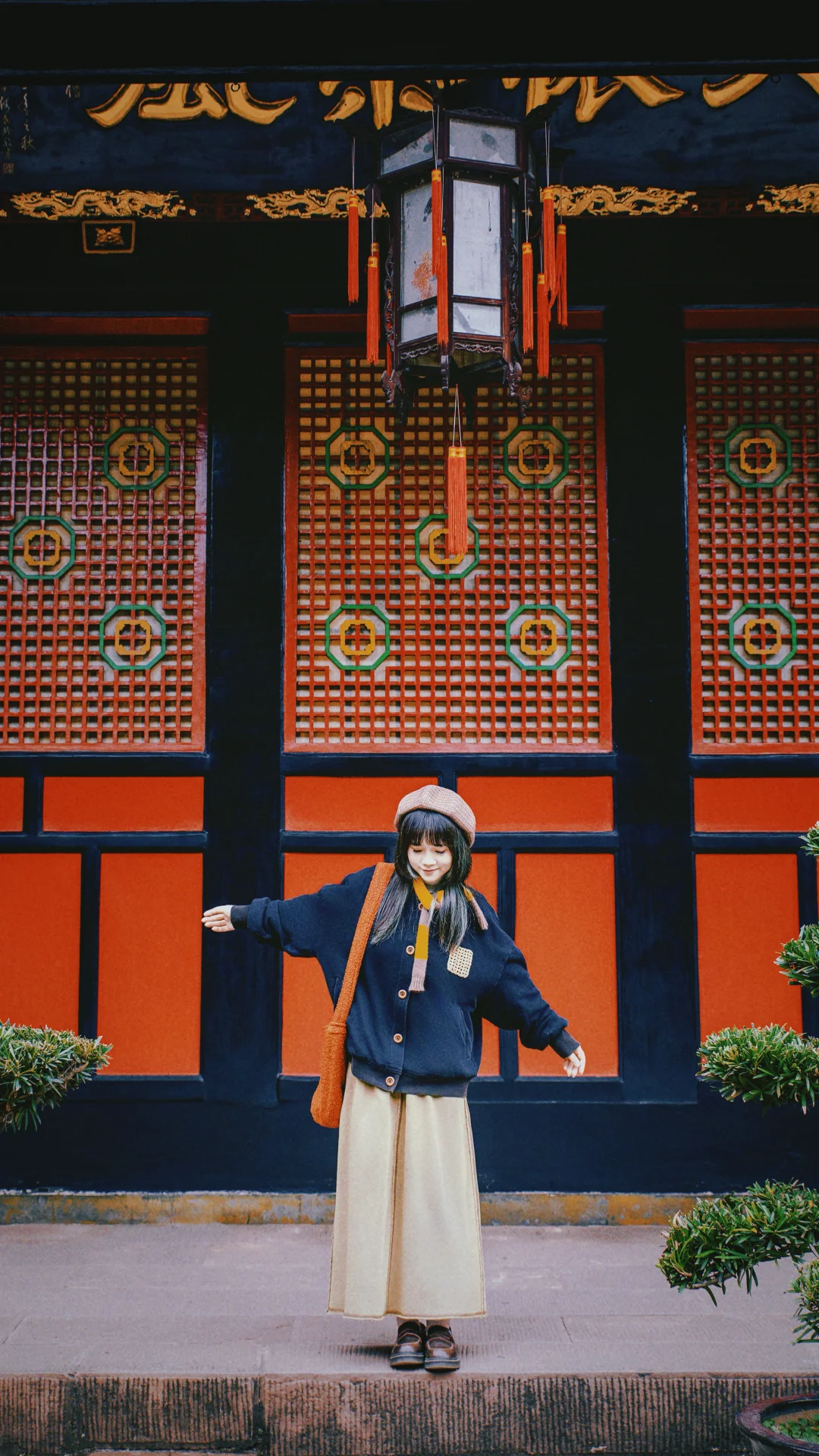 1️⃣门口红墙:拍照很有寓意,在文殊院大门左边围栏是“幸福”二字,“樂”字在大门右边围墙
